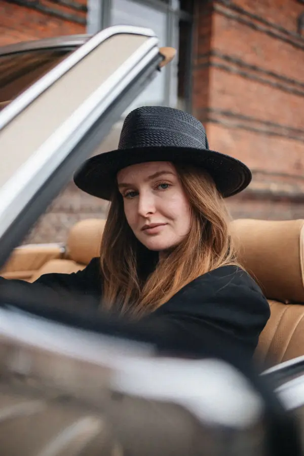 Material: 100% Toquilla Stroh (enthält nichttextile Teile tierischen Ursprungs) Farbe: Schwarz Kopfhöhe: ca. 11 cm Randbreite: ca. 7 cm