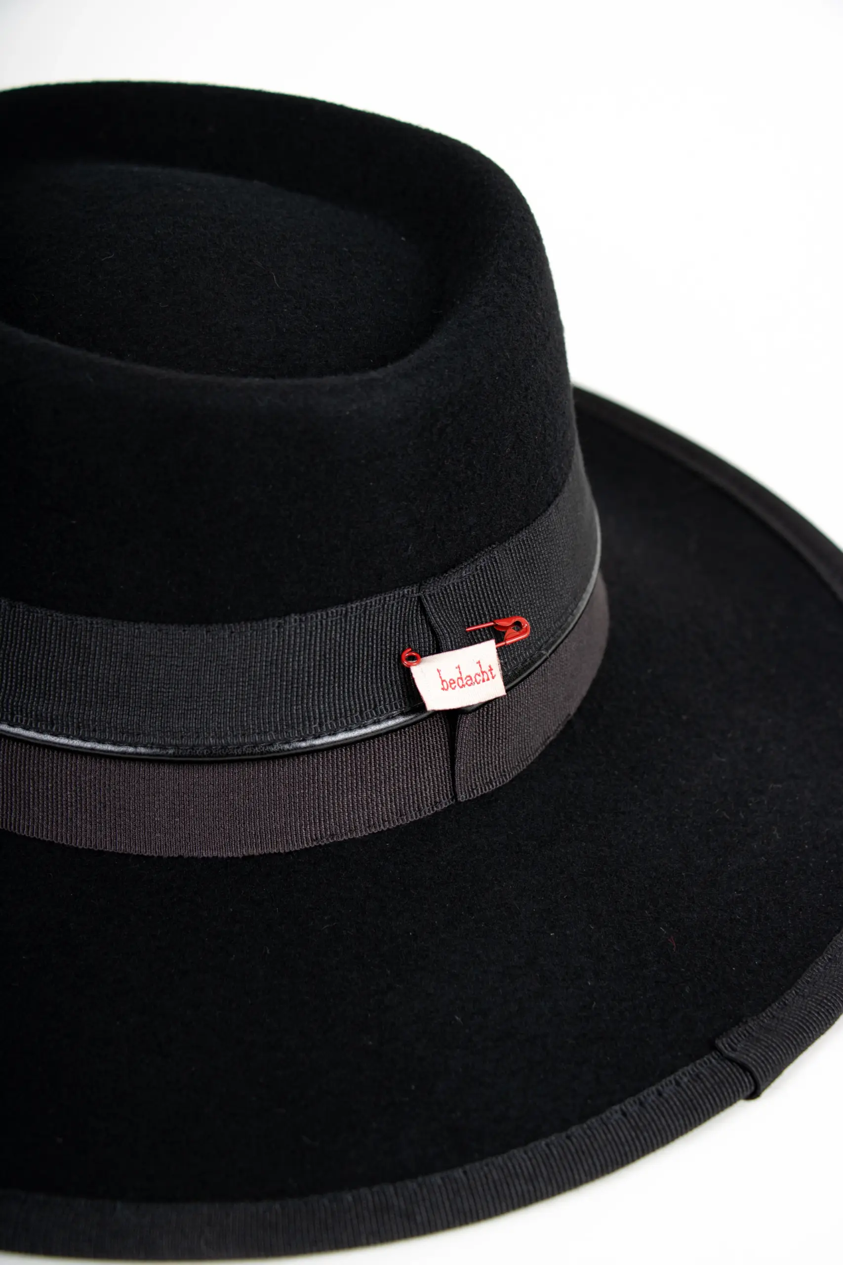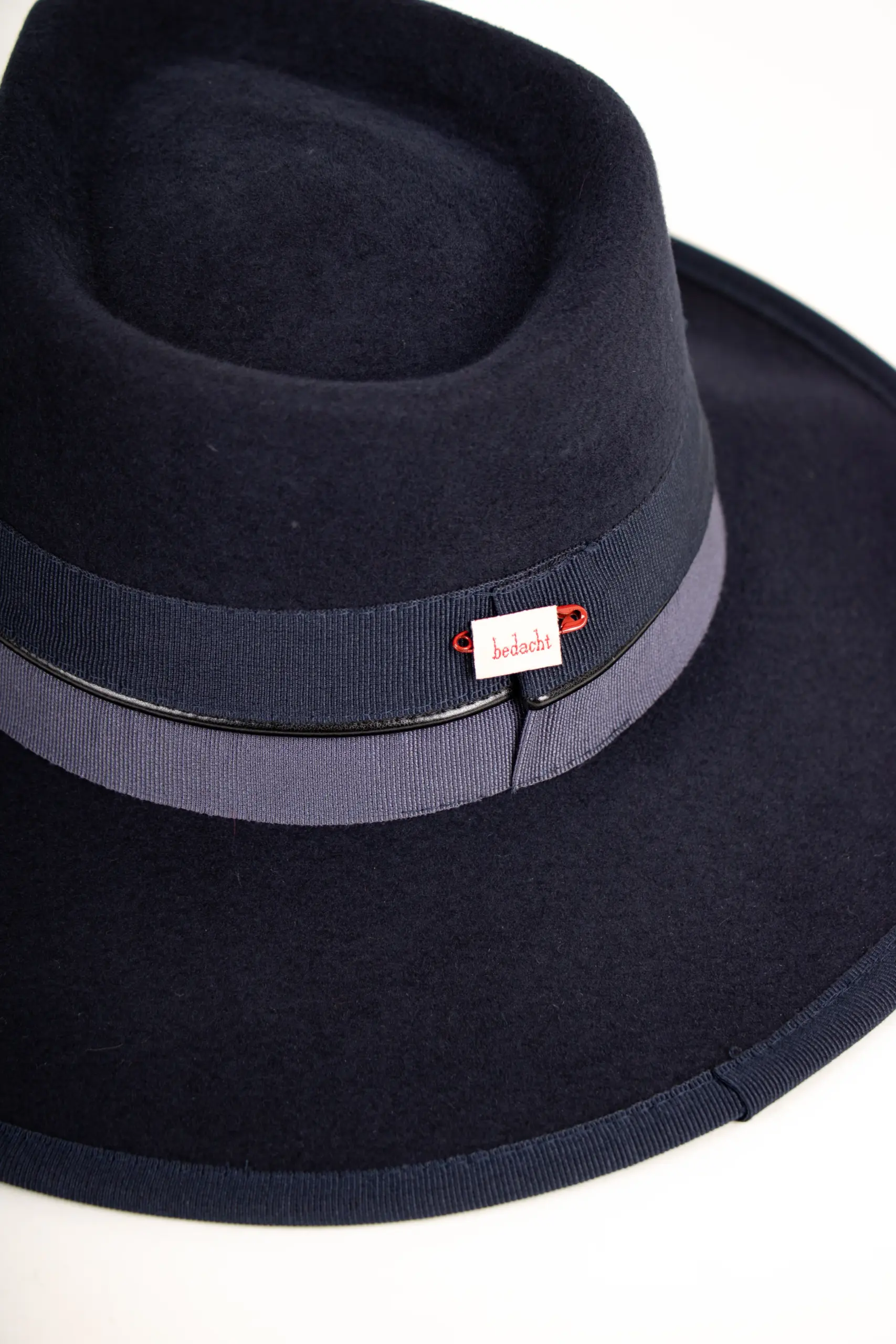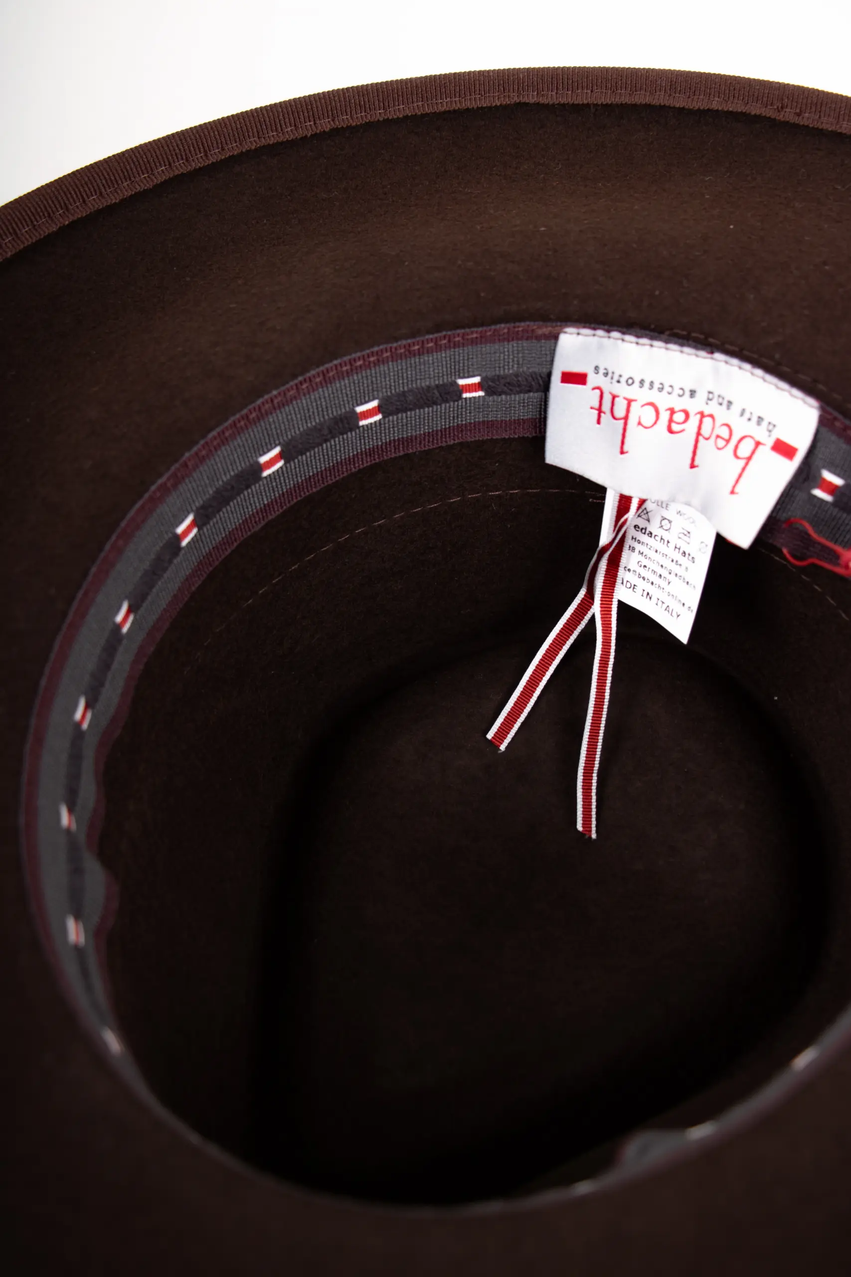 Der Bedacht Damrod Fedora ist ein Statement für klare Formen und moderne Eleganz. Seine markante Ententeich-Krone mit dezenter Einkerbung des Hutkopfes gibt dem Hut seine charakteristische Silhouette – klassisch inspiriert, aber mit einem frischen, urbanen Twist.