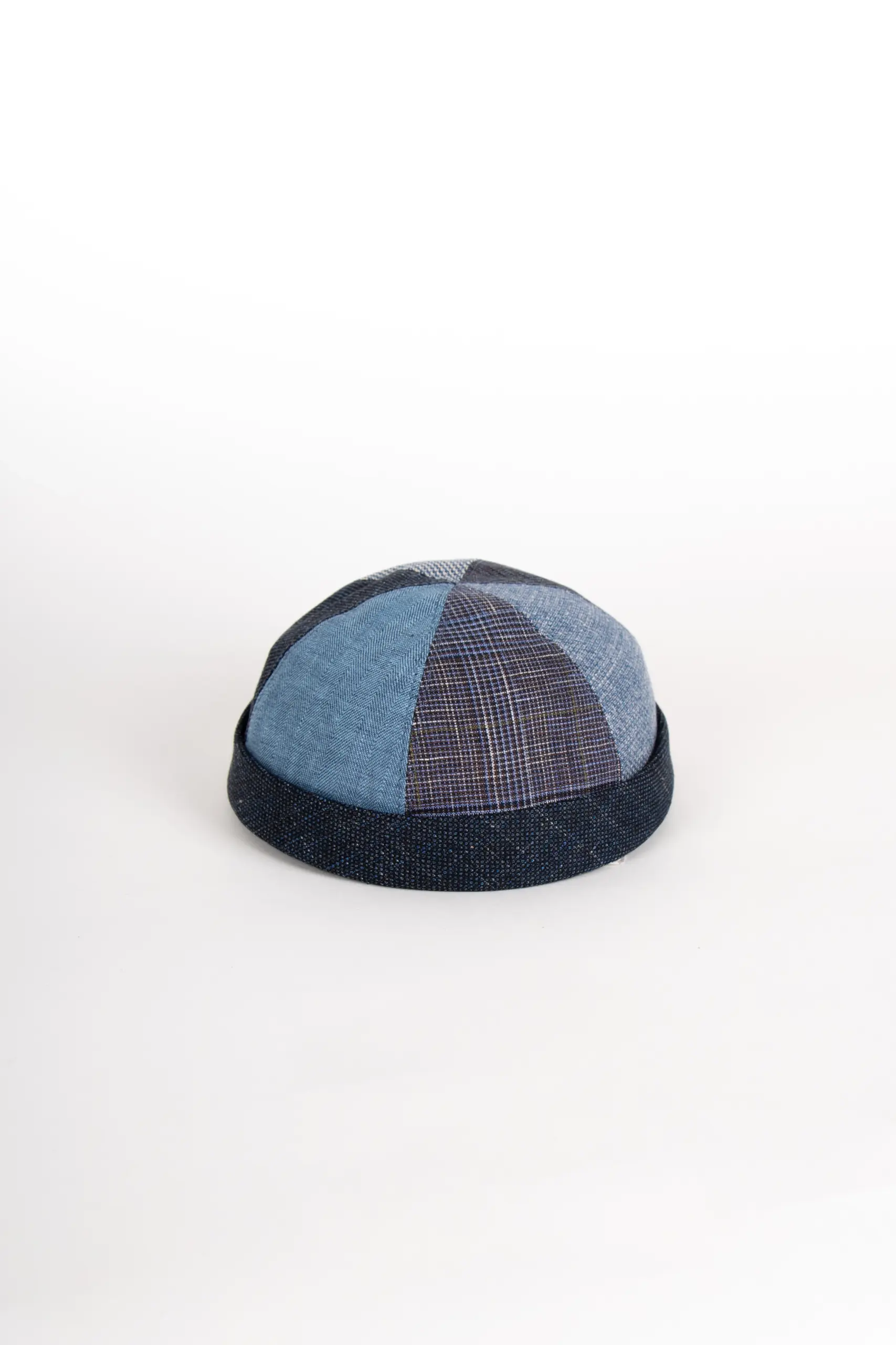 Die Bullani Docker Patchwork aus Bamberg ist Made in Germany – präzise gefertigt, klar in der Form, kompromisslos im Sitz. Kein Schirm, kein Schnickschnack. Stattdessen: die typische kurze Passform, die oberhalb der Ohren endet. Genau das macht sie aus. Das Patchwork aus Baumwolle und Leinen bringt Struktur ins Spiel – lebendig, lässig, mit handwerklicher Tiefe. Blau in Nuancen, die wirken, als hätten sie schon Geschichten erlebt. Innen sorgt ein Viskosefutter für angenehmen Tragekomfort.