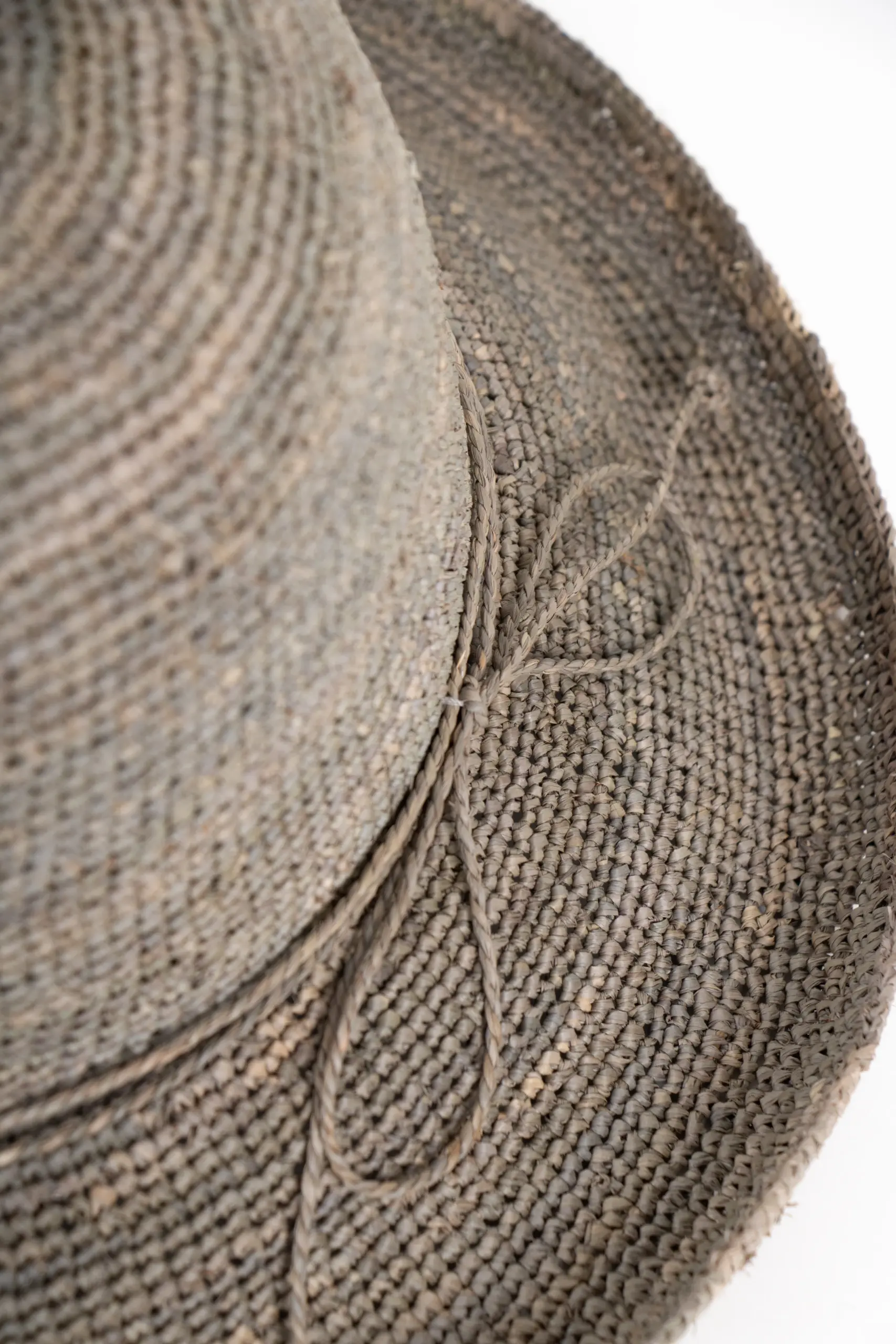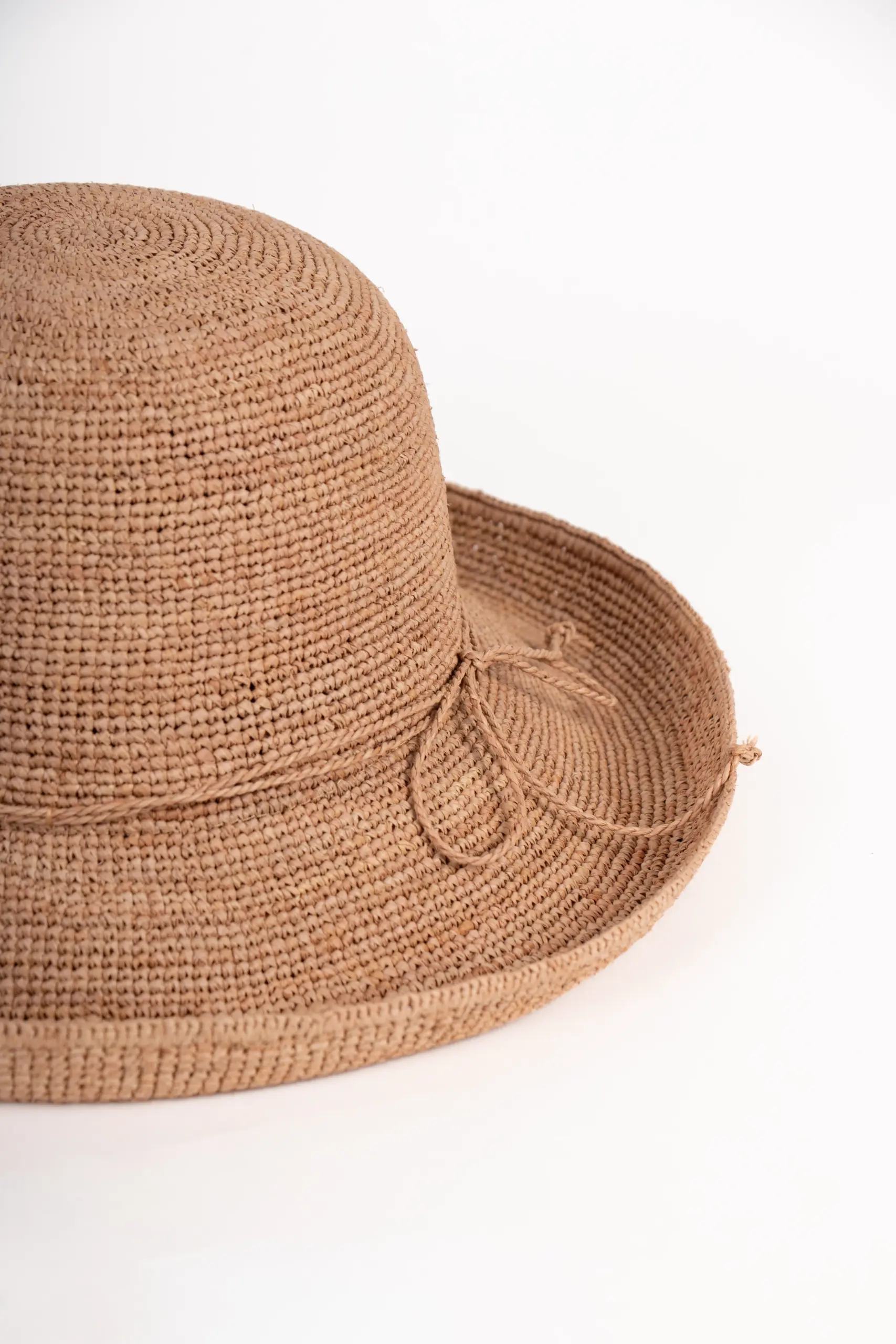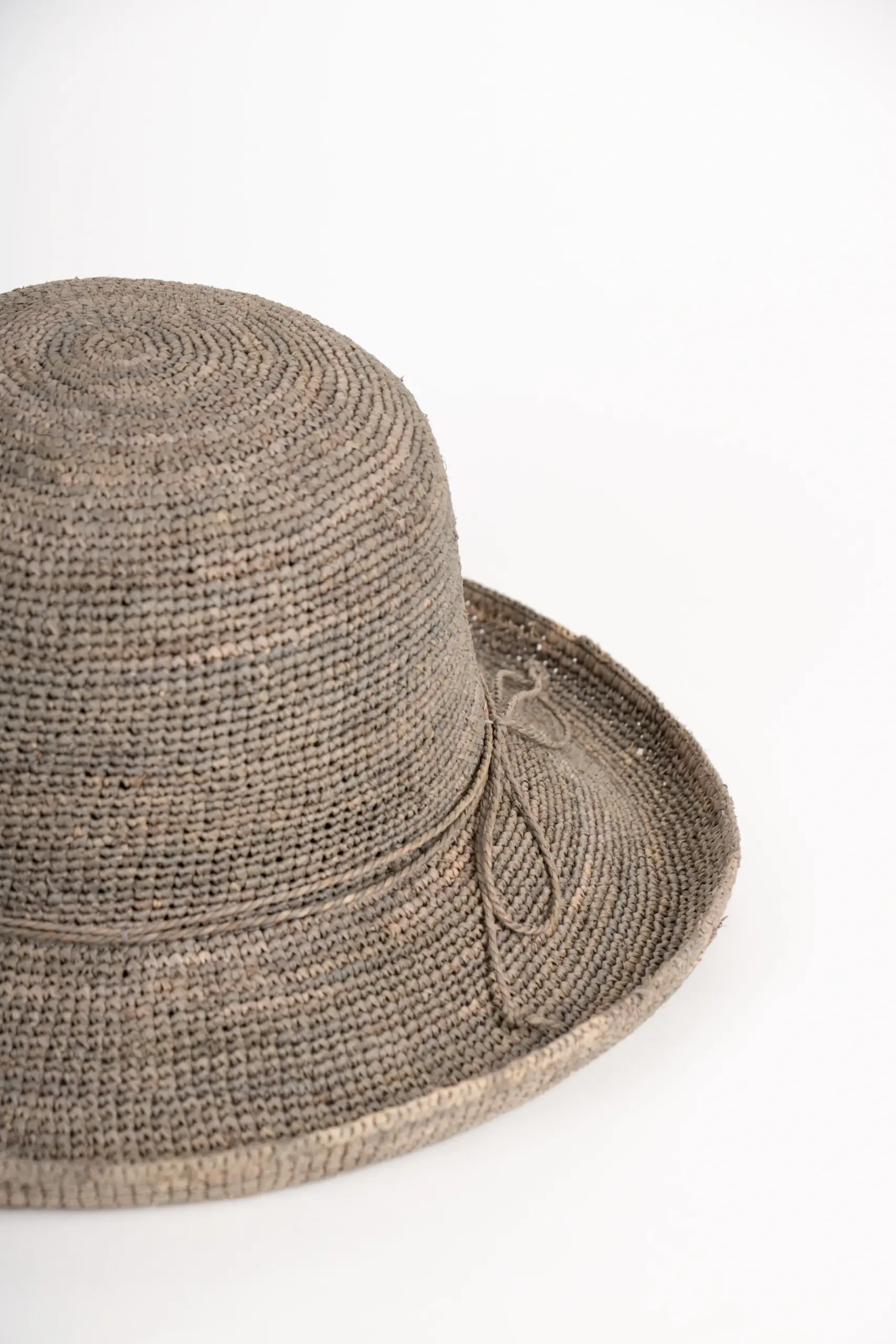 Schmale Stroh-Kordel – Dekoration ohne Drama. Als Garnitur läuft eine schmale Kordel aus Stroh in derselben Farbe des Hutes um die Krone – dezent, natürlich, und passend zum Material. Keine Ripsband-Schleifen, keine aufgesetzten Details. Nur Stroh auf Stroh. Das reicht.