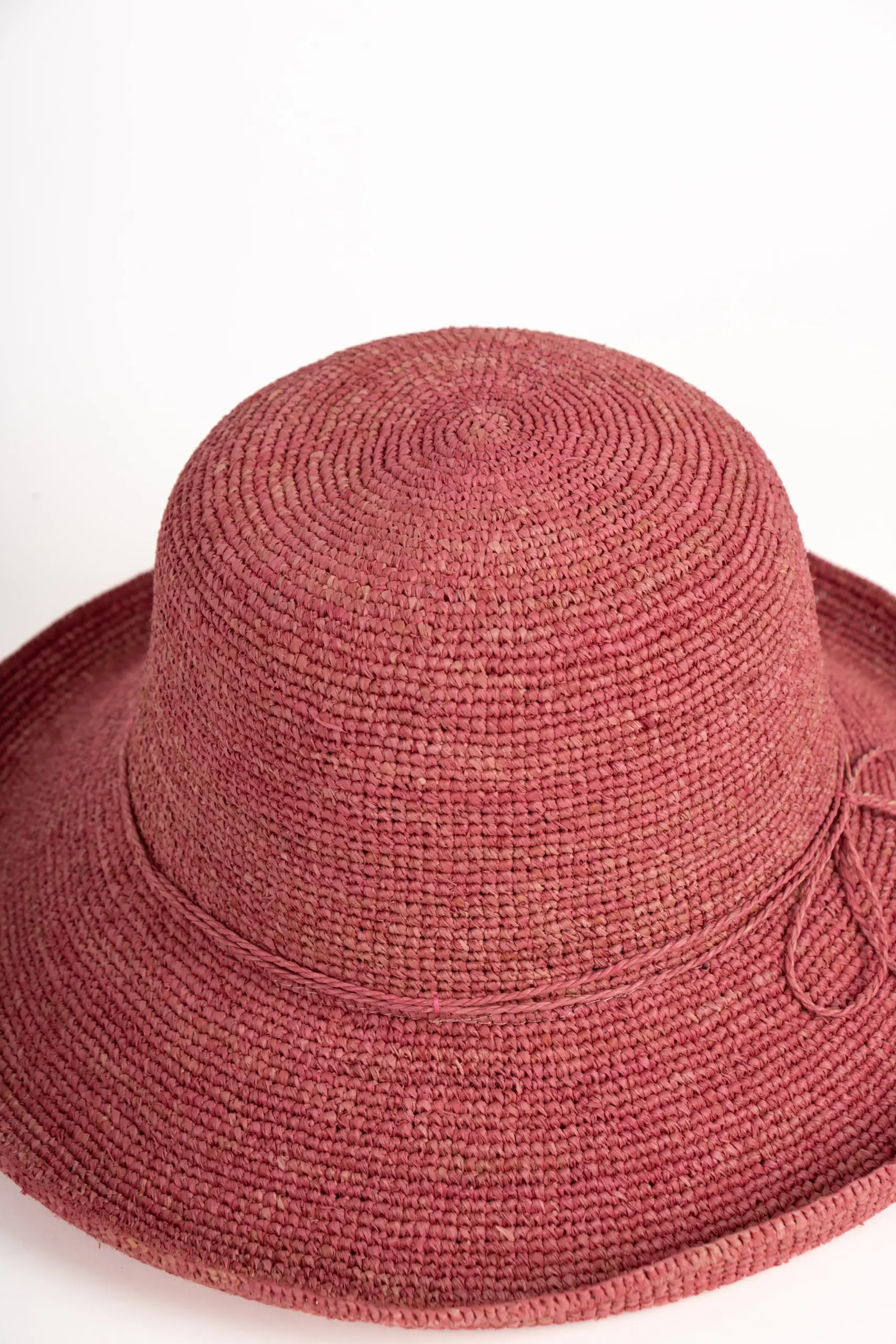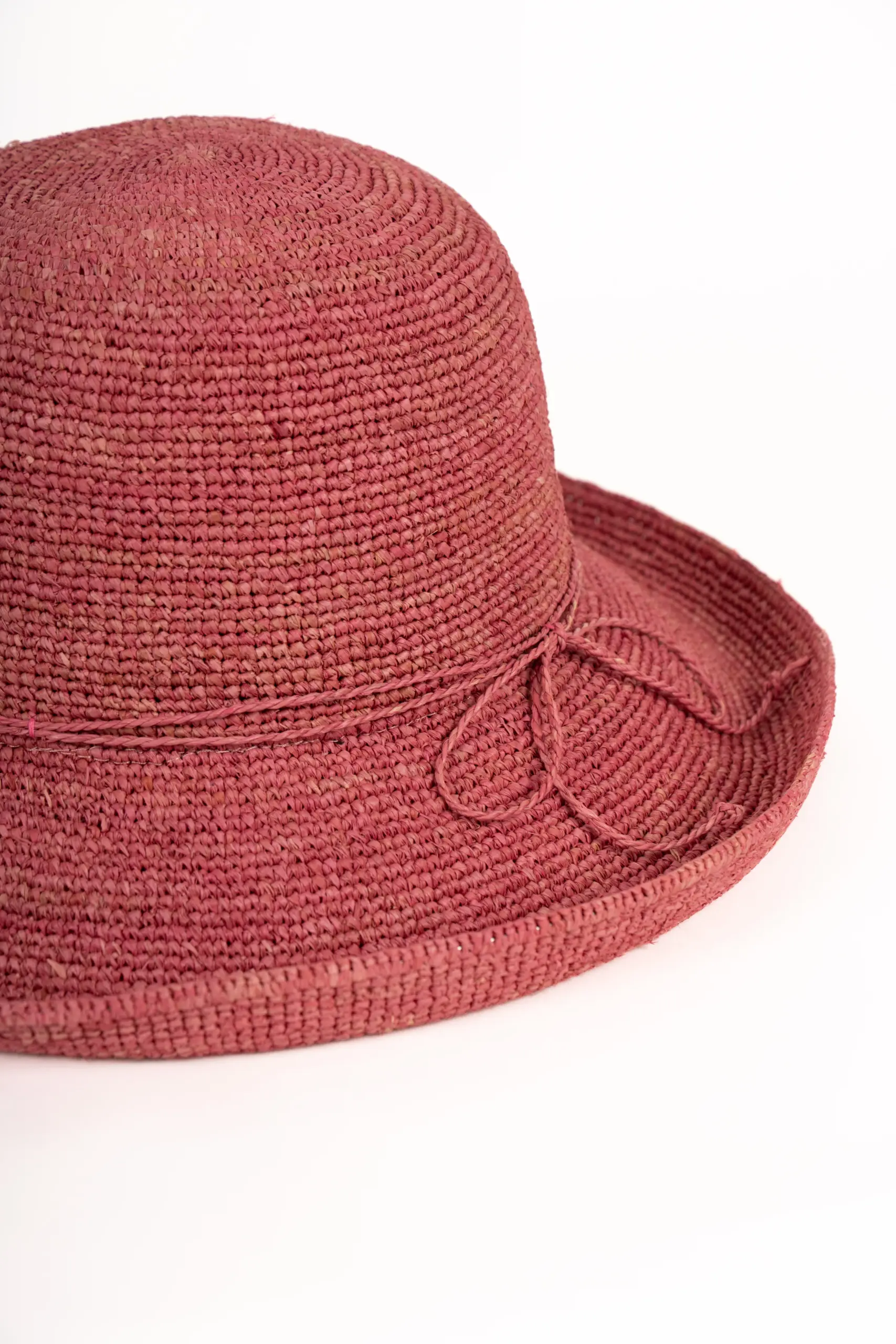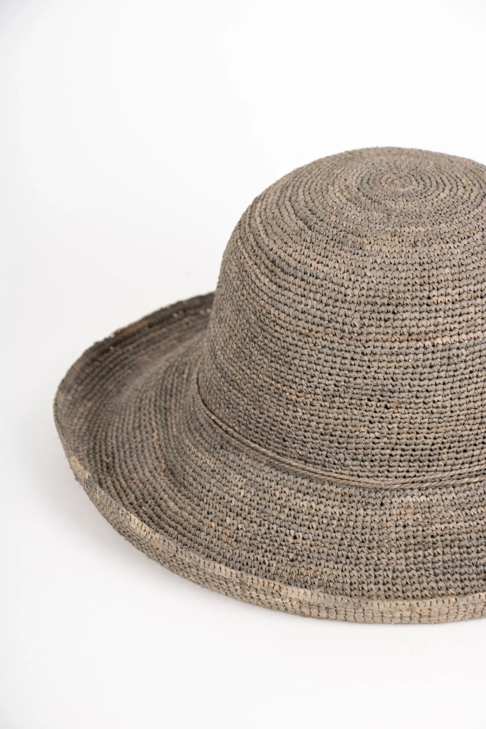 Schmale Stroh-Kordel – Dekoration ohne Drama. Als Garnitur läuft eine schmale Kordel aus Stroh in derselben Farbe des Hutes um die Krone – dezent, natürlich, und passend zum Material. Keine Ripsband-Schleifen, keine aufgesetzten Details. Nur Stroh auf Stroh. Das reicht.
