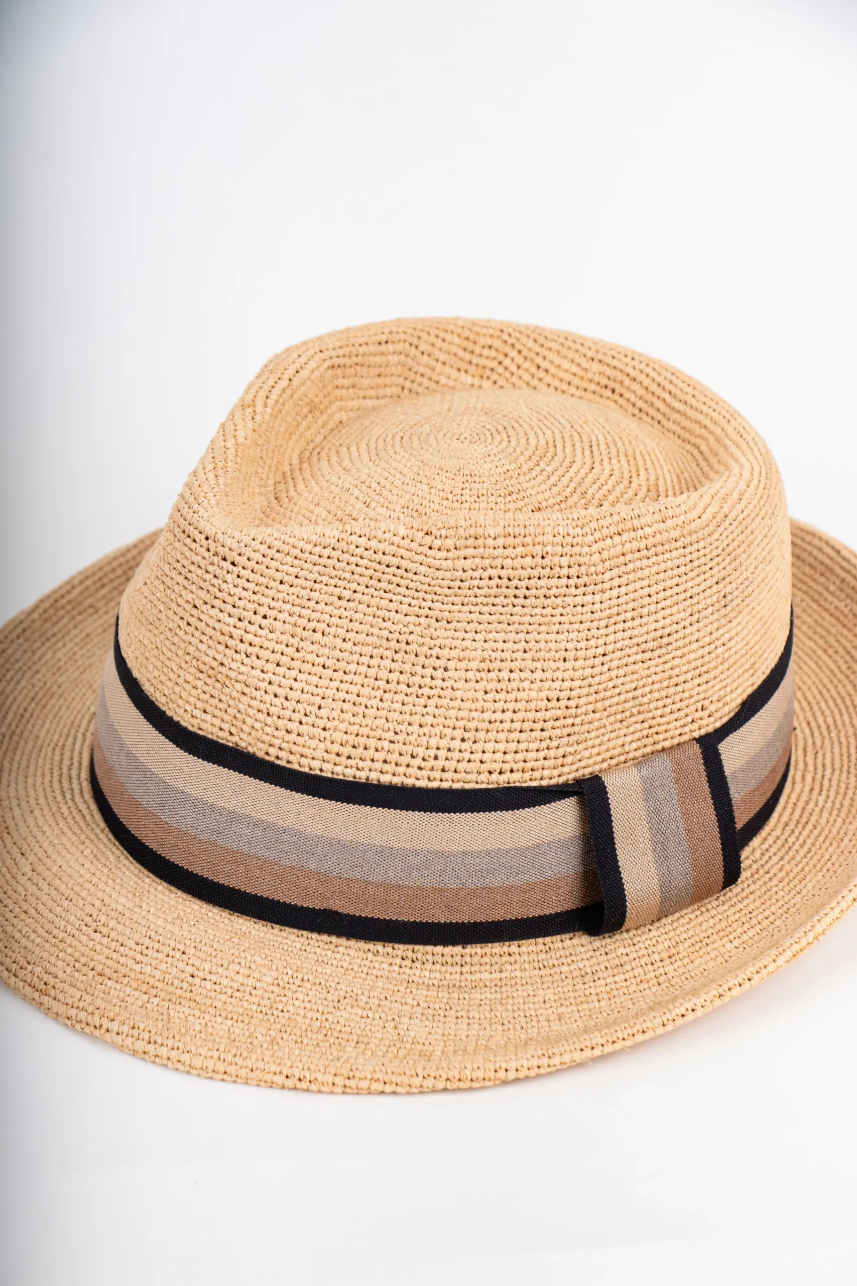 Ein Raffiahut ist ein Hut, der aus den Fasern der Raffiapalme gefertigt wird. Dieses Naturmaterial stammt ursprünglich aus Madagaskar und anderen tropischen Regionen und wird seit vielen Generationen für leichte, luftige Kopfbedeckungen verwendet. Raffia ist besonders beliebt für Sommerhüte, weil es robust, flexibel und angenehm atmungsaktiv ist.