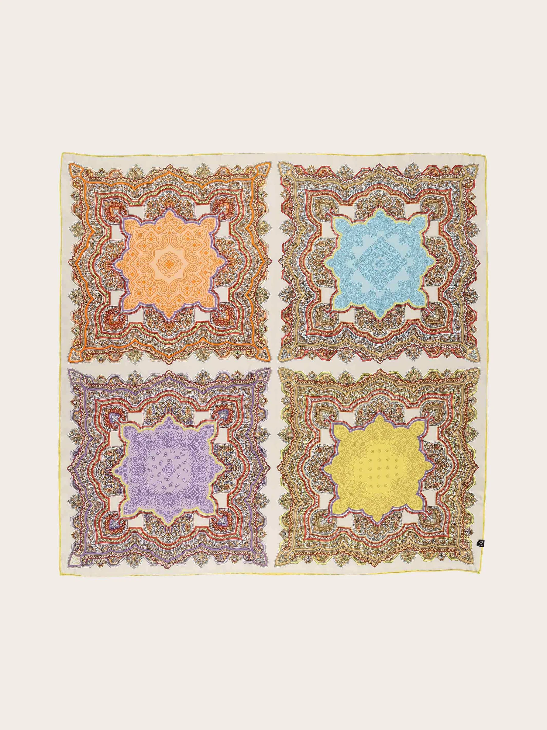 Fraas Seidentuch mit Paisley Muster. Unterschiedlich farbige Paisley Quadrate