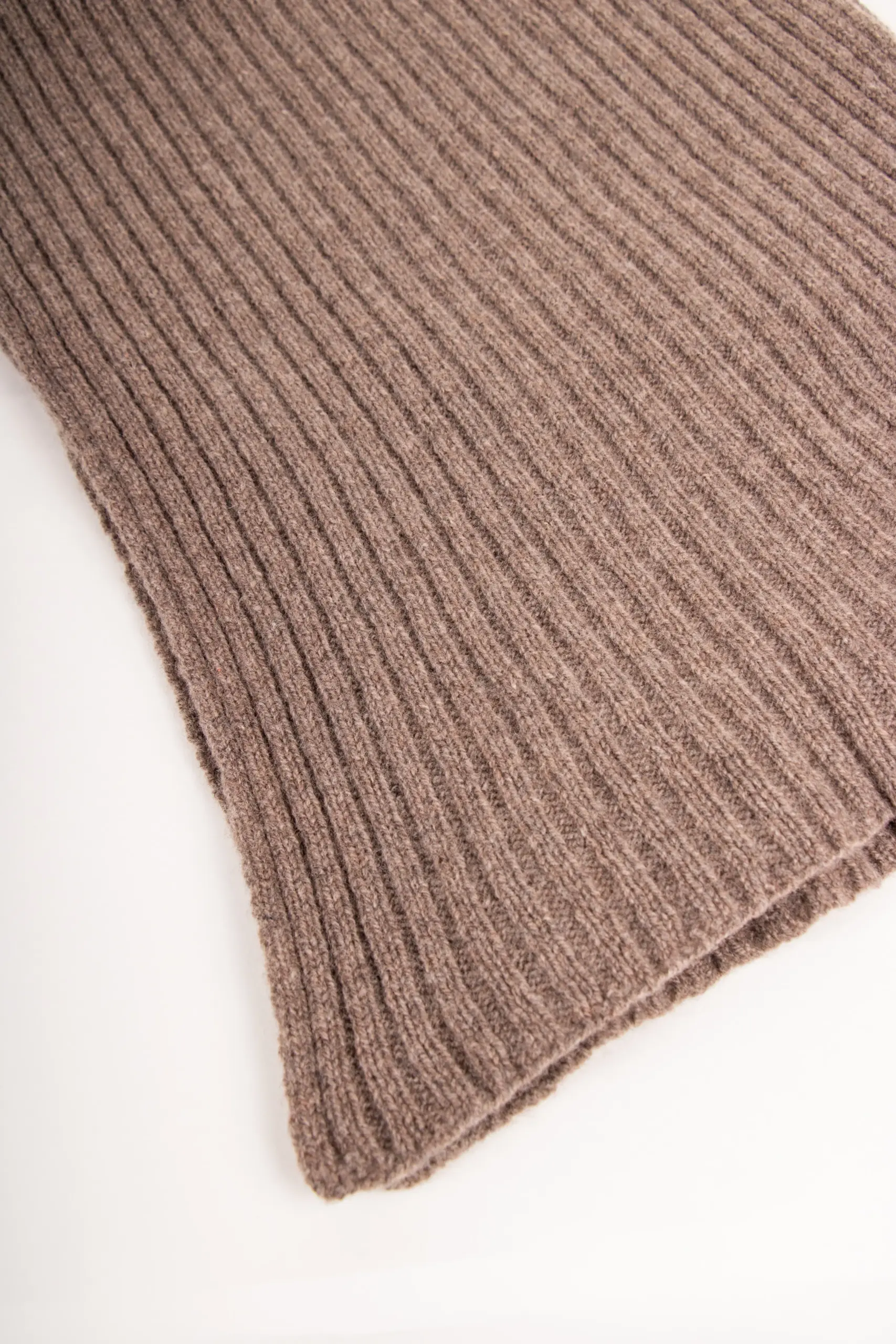 Das gleichmäßige Streifen-Strickmuster unterstreicht den puristischen Look, während die natürlichen Farben Marine, Sand und Taupe mühelos kombinierbar bleiben. Dezent, aber mit Charakter – perfekt abgestimmt auf die passende Grote Kaschmirmütze derselben Linie.