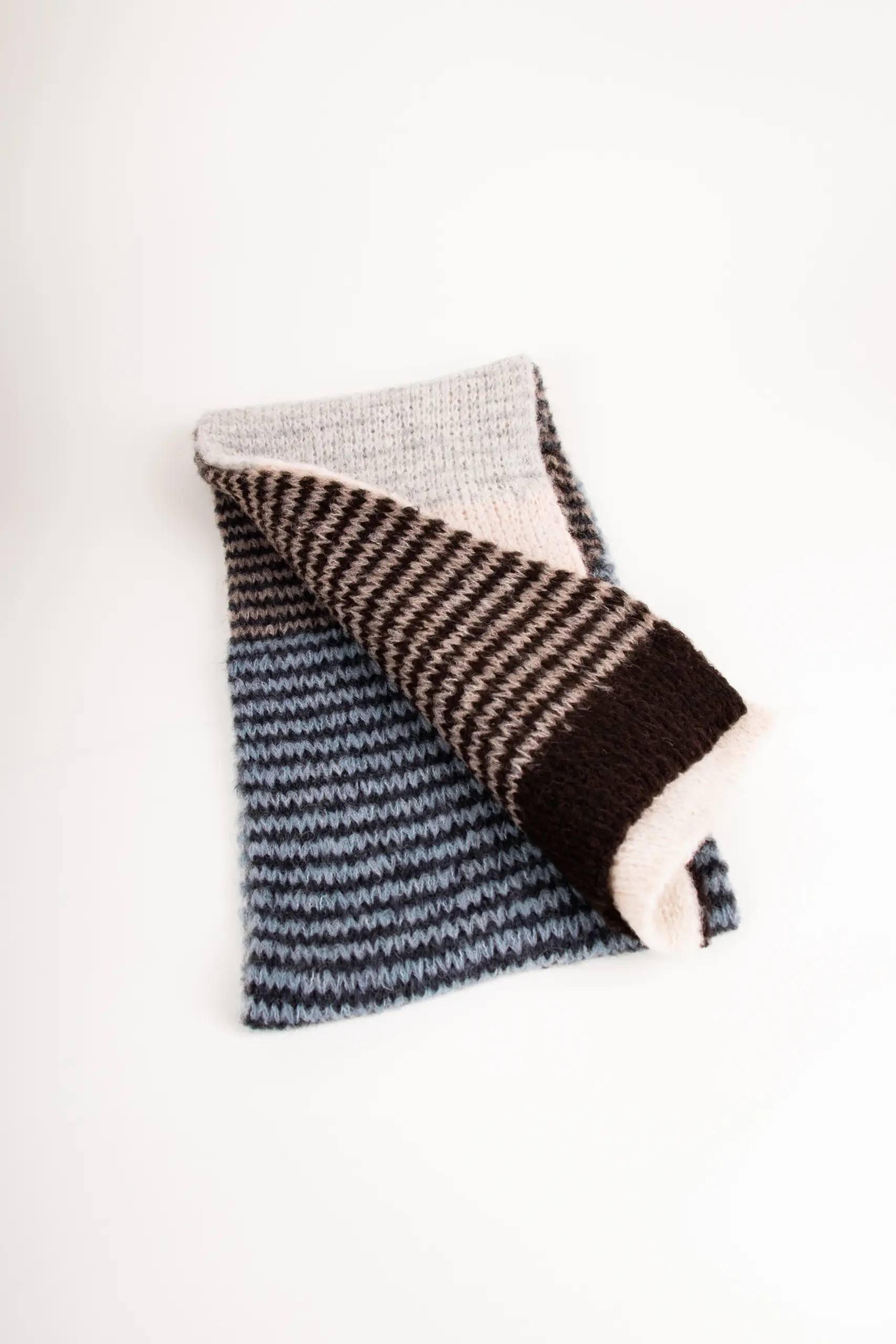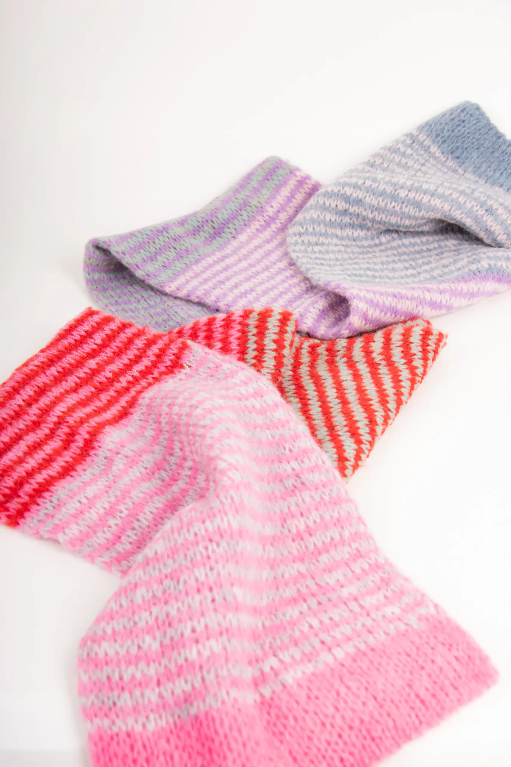 Die feinen Streifen in perlmutt, blush, grau, stahl und anthrazit oder in der Variante bonbon, grau, erdbeere, salbei und feige verleihen dem Schal eine moderne, verspielte Note – subtil genug, um elegant zu wirken, farbig genug, um Akzente zu setzen.