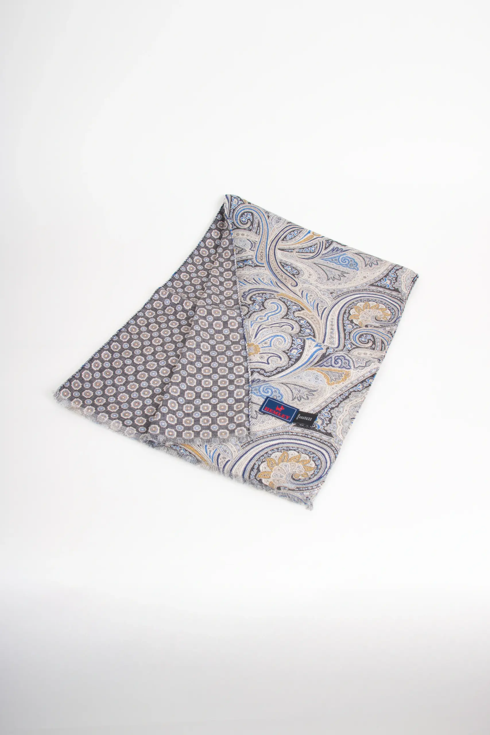 Der Hemley Seidenschal Gemustert steht für kunstvolles Design verbunden mit exklusiver Seidenqualität – und präsentiert sich als elegantes Accessoire für alle und jede*n. Sein wendbares Konzept macht dieses Tuch zu einem vielseitigen Styling-Partner: Auf der einen Seite zeigt sich ein markantes, großflächiges Paisley-Muster, das Tradition und Eleganz ausstrahlt. Die andere Seite begeistert mit einem fein gepunkteten Dessin, das an die ornamentalen Muster portugiesischer Fliesen erinnert – modern, liebevoll detailliert und perfekt für einen dezenten Farbkontrast.