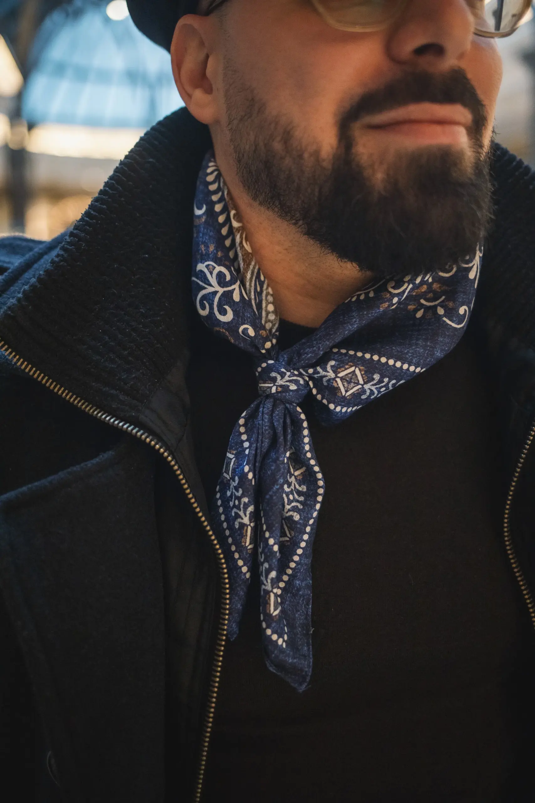Das Hemley Seidentuch Paisley meliert verbindet klassische Eleganz mit lässiger Optik. Die melierte Struktur verleiht dem ikonischen Paisley-Muster eine moderne, fast schon „washed“ Anmutung – wie ein Bandana in Luxusausführung.