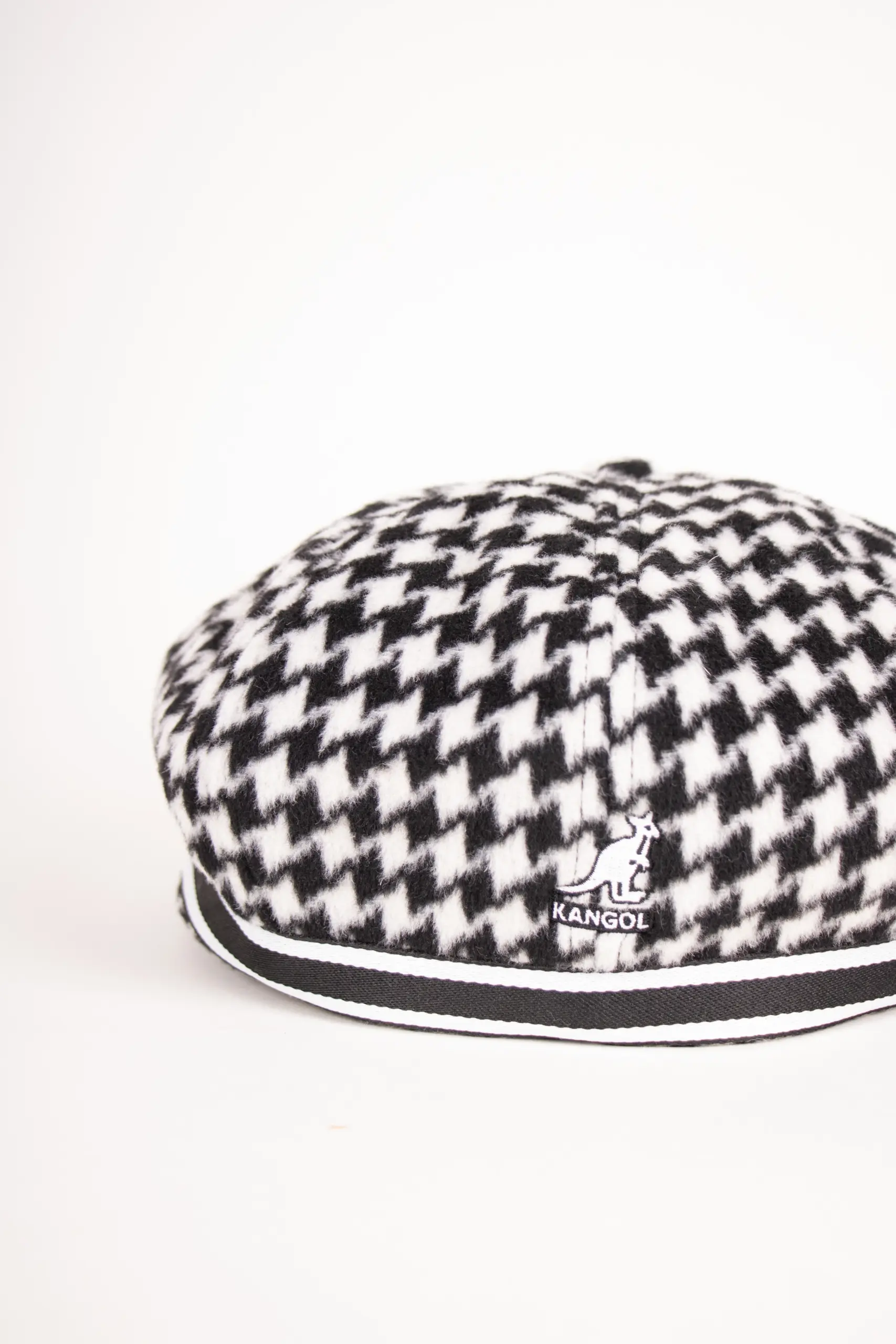 Das gestreifte Dekoband an der Stirn sorgt für einen zusätzlichen Eyecatcher und bricht die Strenge des Musters subtil auf. Typisch für die Form in 8teiliger Zusammensetzung sitzt die Mütze voluminös und locker, was ihr einen urbanen, lässigen Charakter gibt. Auf dem Kopf befindet sich ein Knopf im selben Muster der Mütze. Hinten rundet das eingestickte Kangol-Logo das Design ab – ein klares Bekenntnis zur Marke mit Kultstatus.