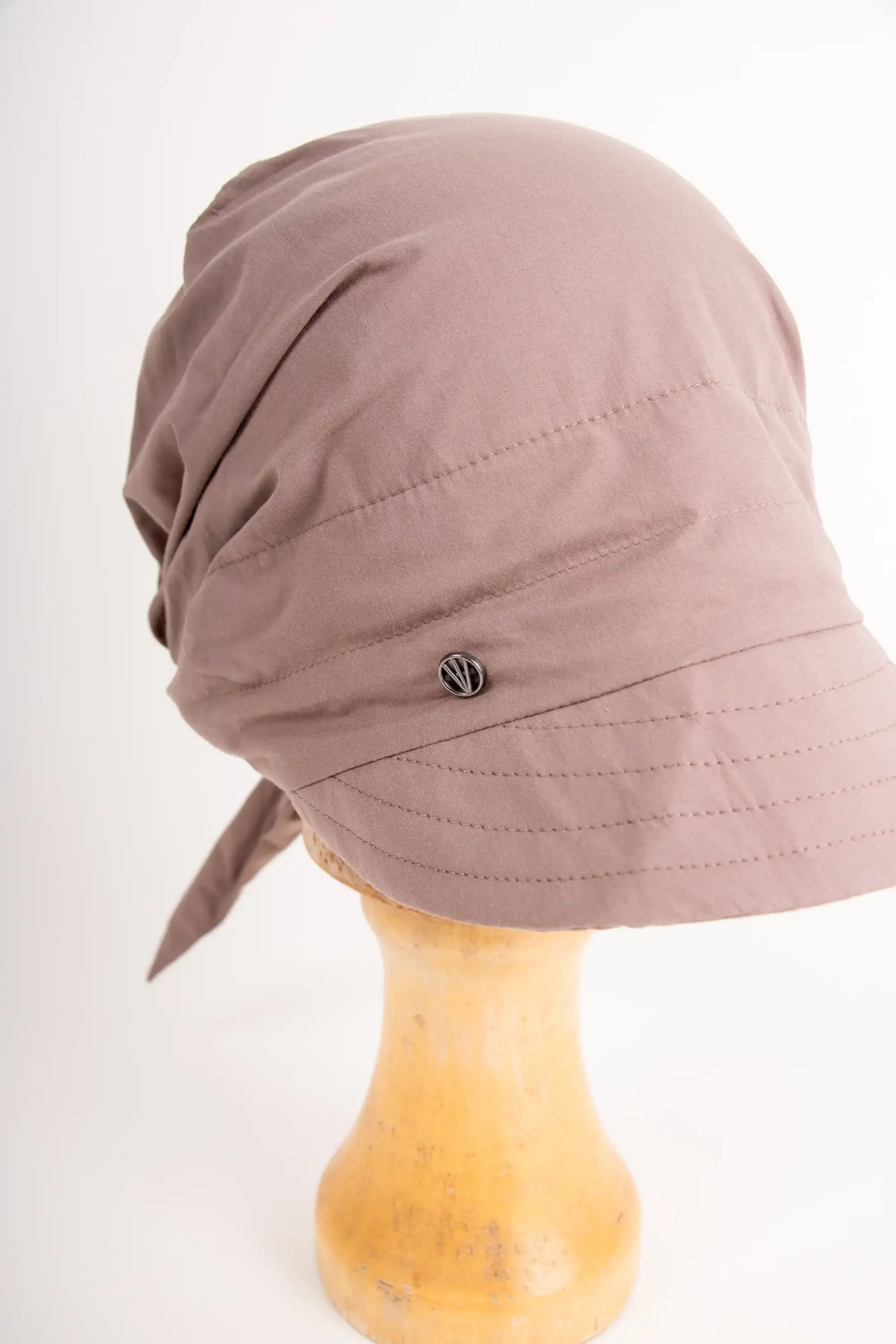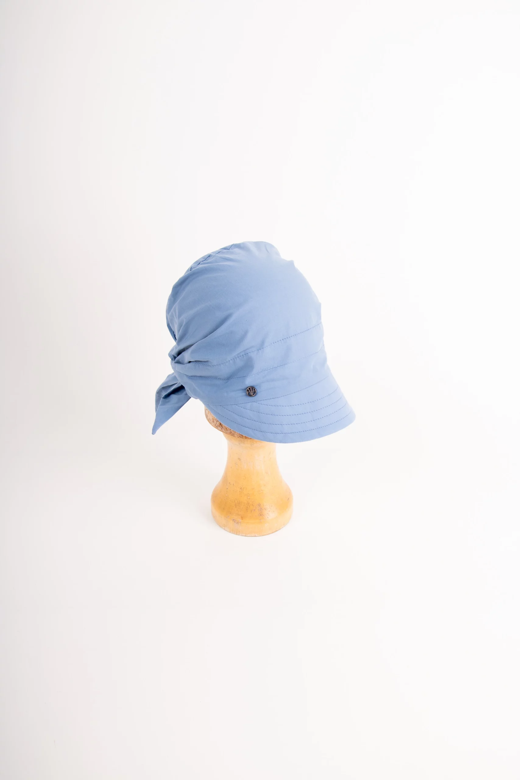 Wie pflege ich die Bindemütze? Handwäsche in kaltem Wasser mit mildem Waschmittel. Nicht auswringen, sondern vorsichtig ausdrücken. Flach auf einem Handtuch liegend trocknen lassen, nicht aufhängen. Baumwolle ist unkompliziert – die Mütze ist pflegeleicht.
