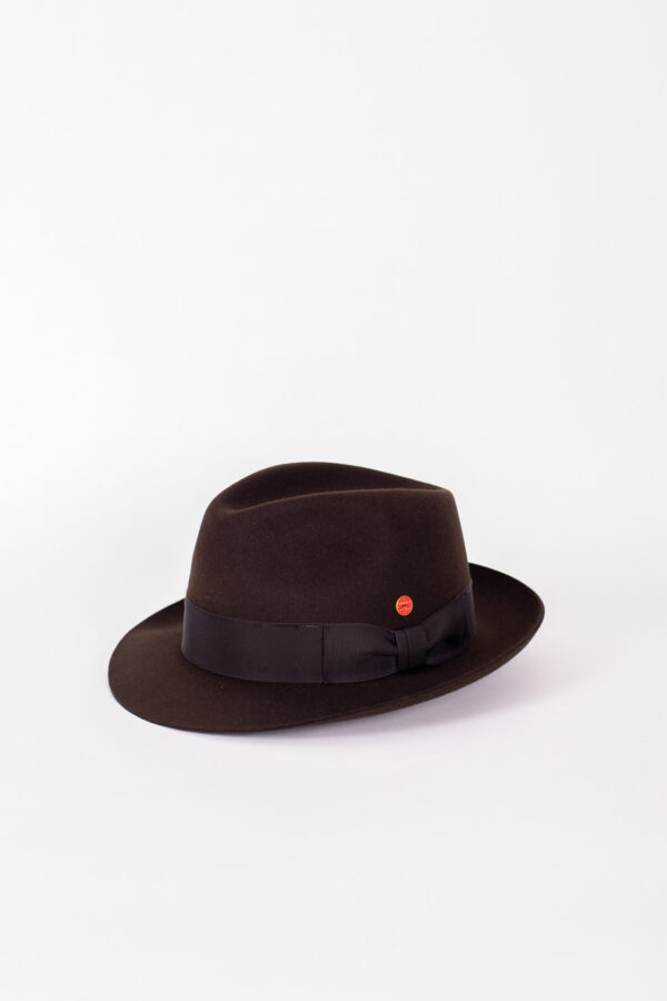 Eleganter Herrenhut aus dem Hause Mayser. Das Modell Mayser City Fanal ist aus Haarfilz gefertigt und ist ein klassischer Herrenhut mit einem schönen Innenfutter. Die Kopfhöhe beträgt ca. 10 cm. Der Rand wurde in einer Breite von ca. 6,5 cm gearbeitet. Dieses Modell ist sehr elegant und ist ausgesprochen gut zum Businessanzug / Mantezu getragen. Selbstverständlich ist das Modell „City“ auch lässig zur legeren Kleidung tragbar. Eine schöne Farbauswahl für diesen Hut mit einer Ripsbandgarnitur steht Ihnen zur Verfügung.