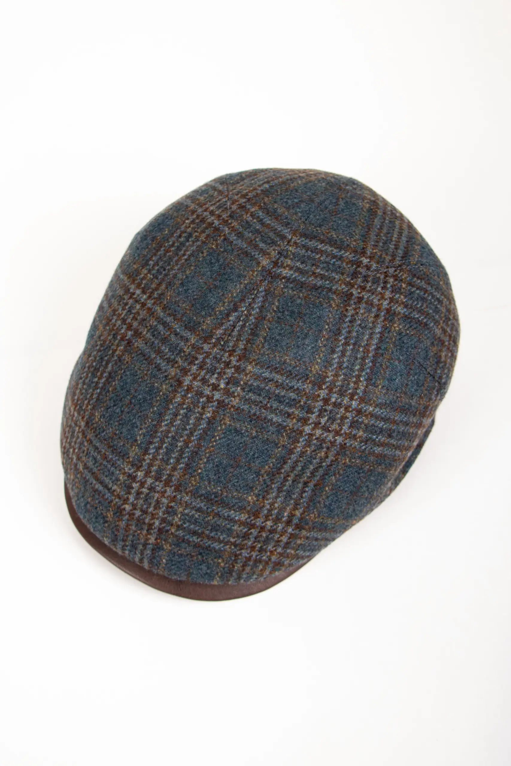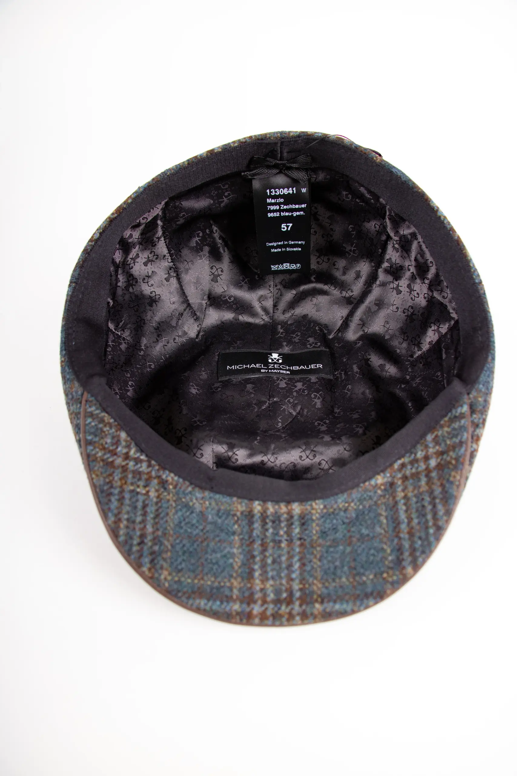 Die Mayser Marzio Zechbauer Flatcap ist ein Meisterstück klassischer Kopfbedeckungskunst – gefertigt aus feinster Schurwolle mit einem charakteristischen Glencheck-Muster in Blau-Braun.