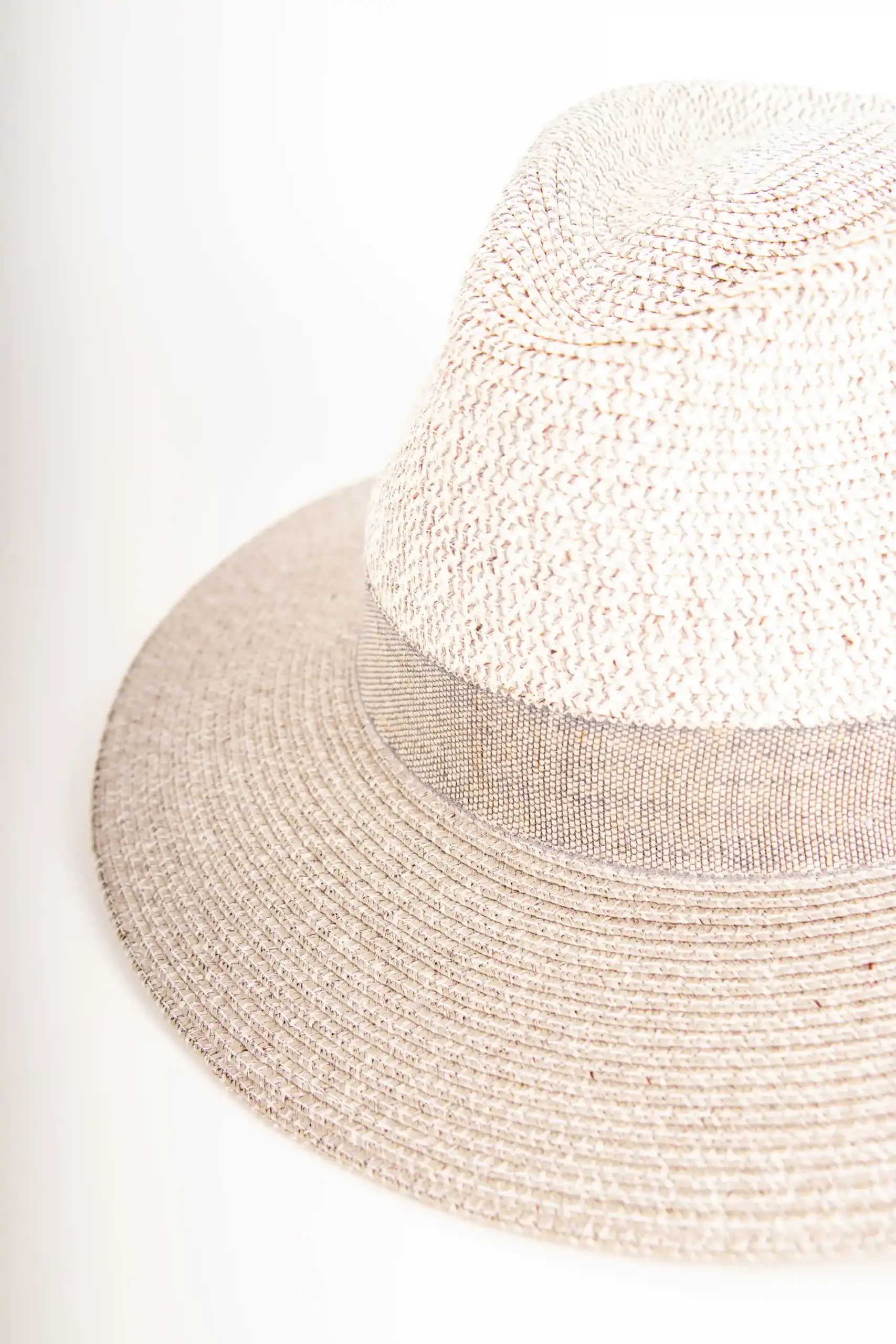 Material: 47% Papier, 32% Leinen, 21% Polyester Farbe: Ecru/Rauch Kopfhöhe: ca. 9 cm Randbreite: ca. 6,5 cm