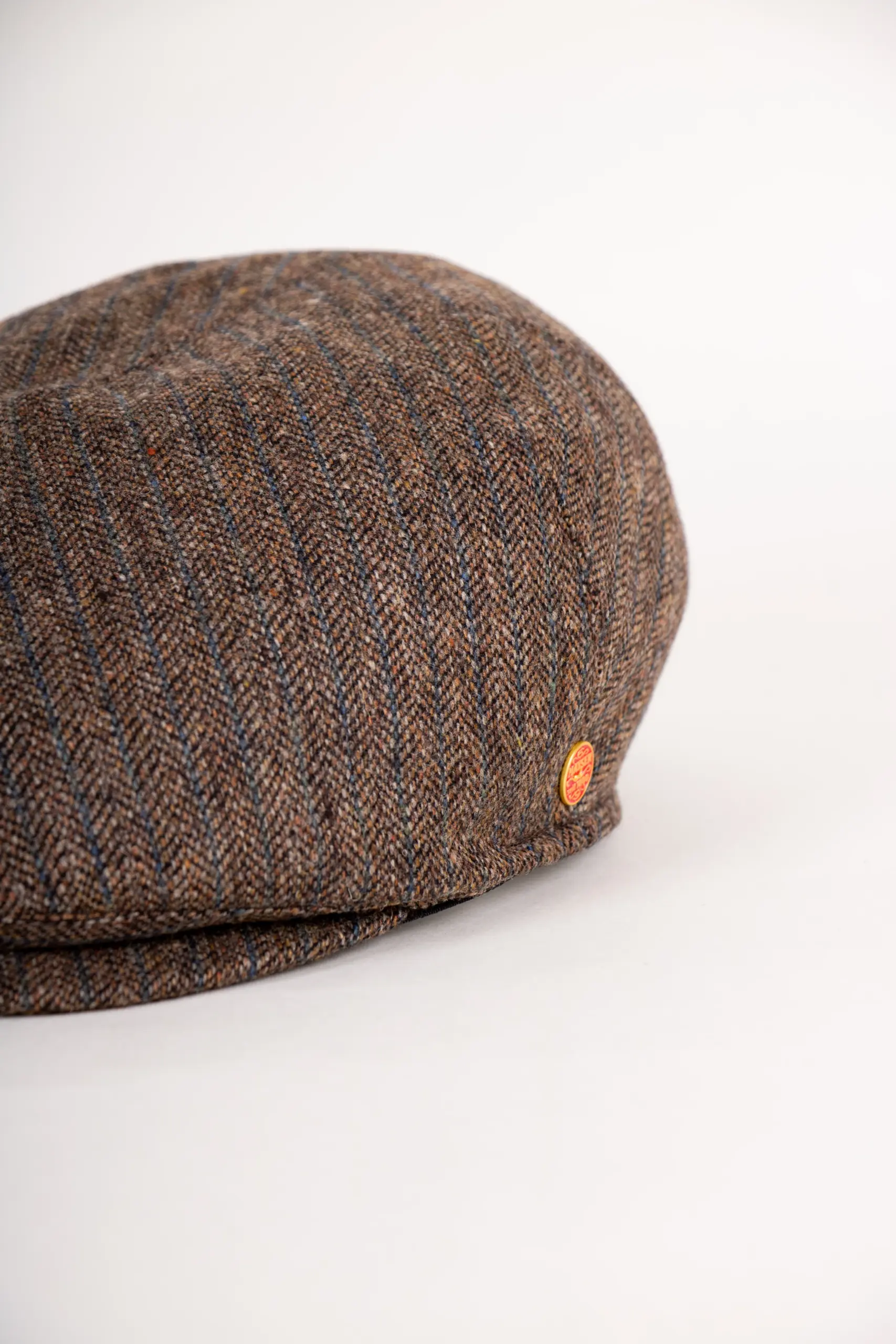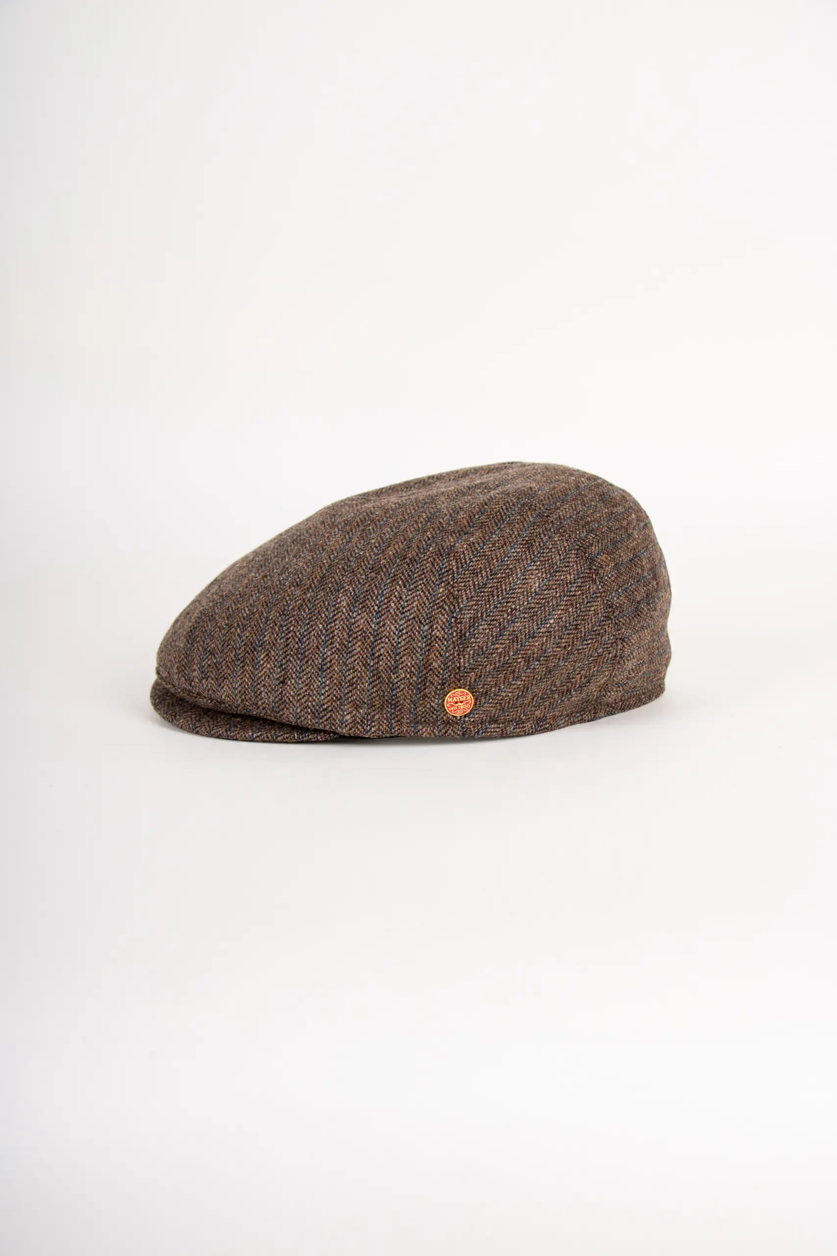 Die Cap ist 1-teilig gearbeitet mit mittiger und seitlichen Nähten, wodurch sie sich dem Kopf besonders gut anschmiegt. Auf einen Steg wurde bewusst verzichtet, was ihr einen sehr klaren, puristischen Look verleiht. Der kleine Mayser-Knopf auf der linken Seite ist das einzige dezente Detail – typisch für die stilvolle Zurückhaltung des Traditionshauses.