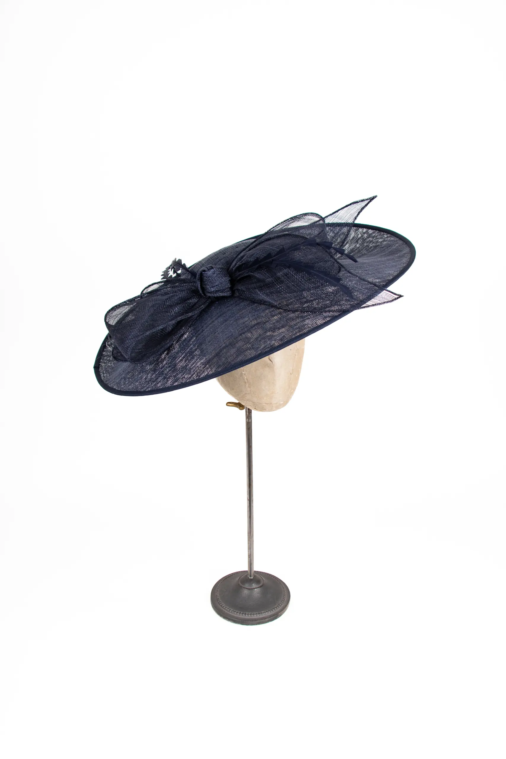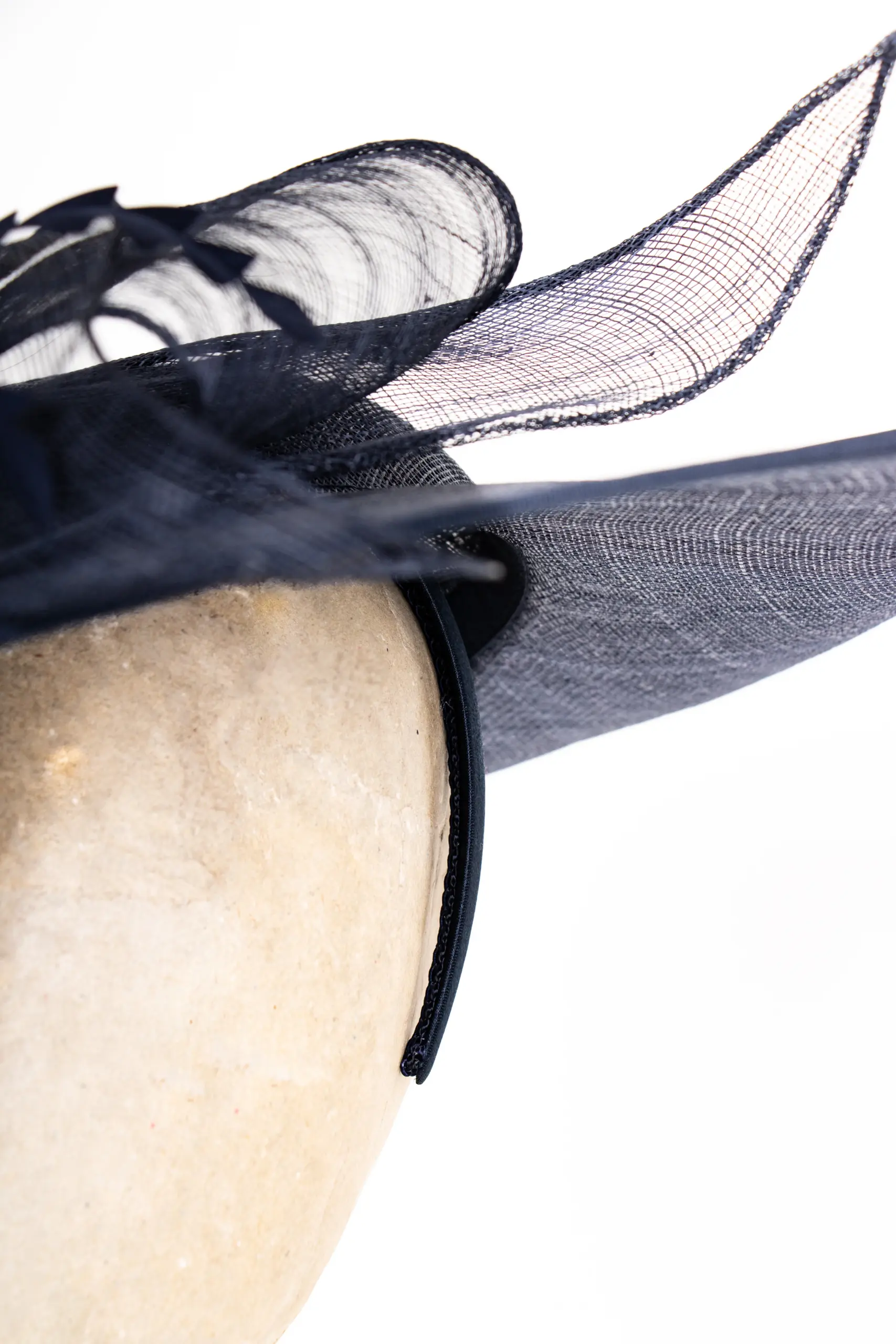 Sinamay – das feine, auf den Philippinen gewonnene Naturstroh – macht den Fascinator trotz seiner Größe erstaunlich leicht. Der verstellbare Haarreif sorgt dafür, dass Chiara nicht einfach nur sitzt, sondern wirklich passt: Die Position kann individuell angepasst werden, je nach Frisur, Gesichtsform und persönlichem Stil. Rechts getragen, wie es die Tradition vorsieht – oder links, weil Regeln manchmal nur Vorschläge sind.