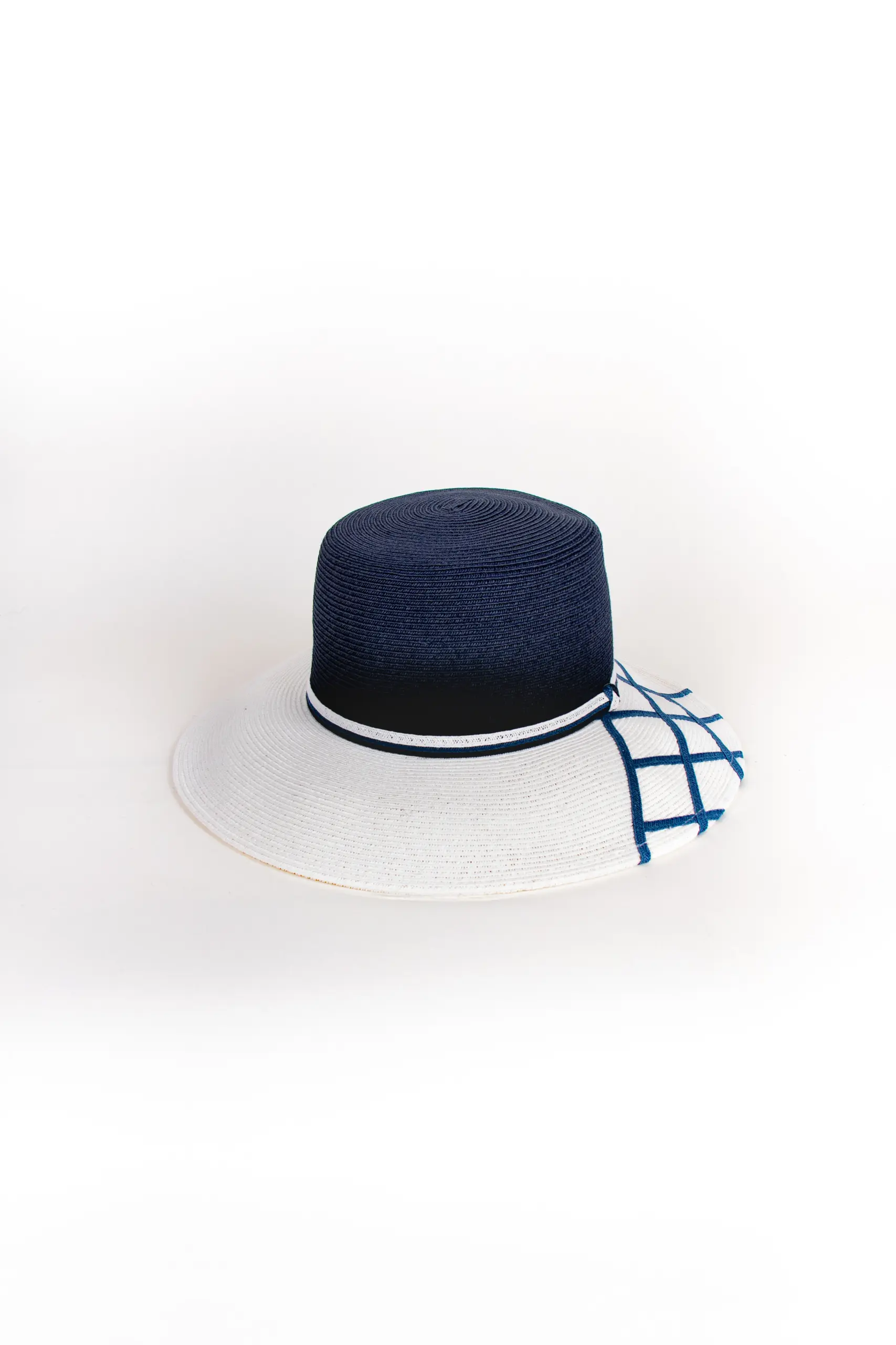 • Maritimes Design mit Karo-Detail an der Krempe