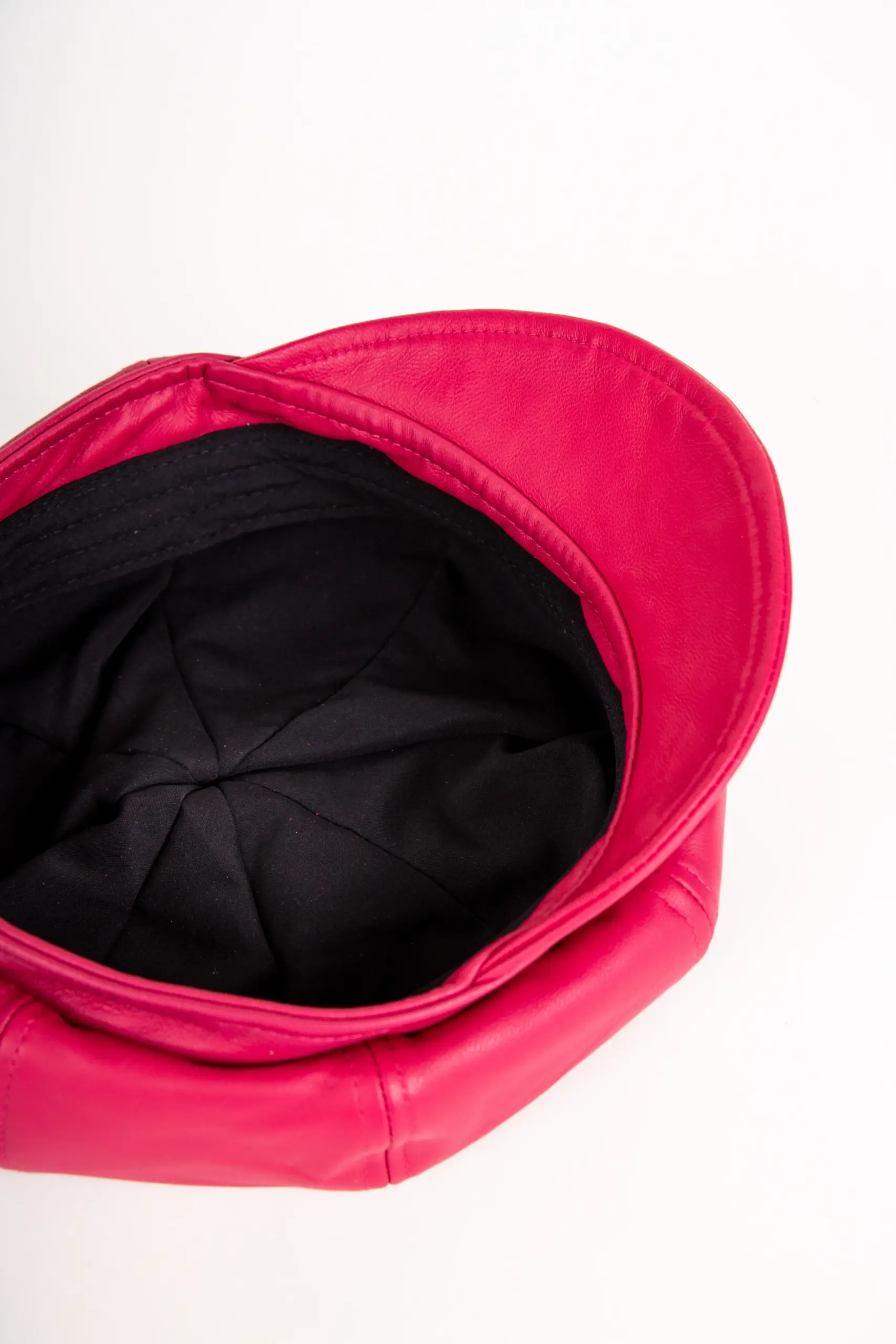 Material: 100% Glattleder Futter: 10% Baumwolle, 90% Polyester Farbe: Schwarz, Rubin, Beere Schirmlänge: ca. 5 cm Steghöhe: 2,5 cm Größe: S/55-56 cm, M/ 57-58 cm, L/ 59-60 cm Form: Ballonmütze