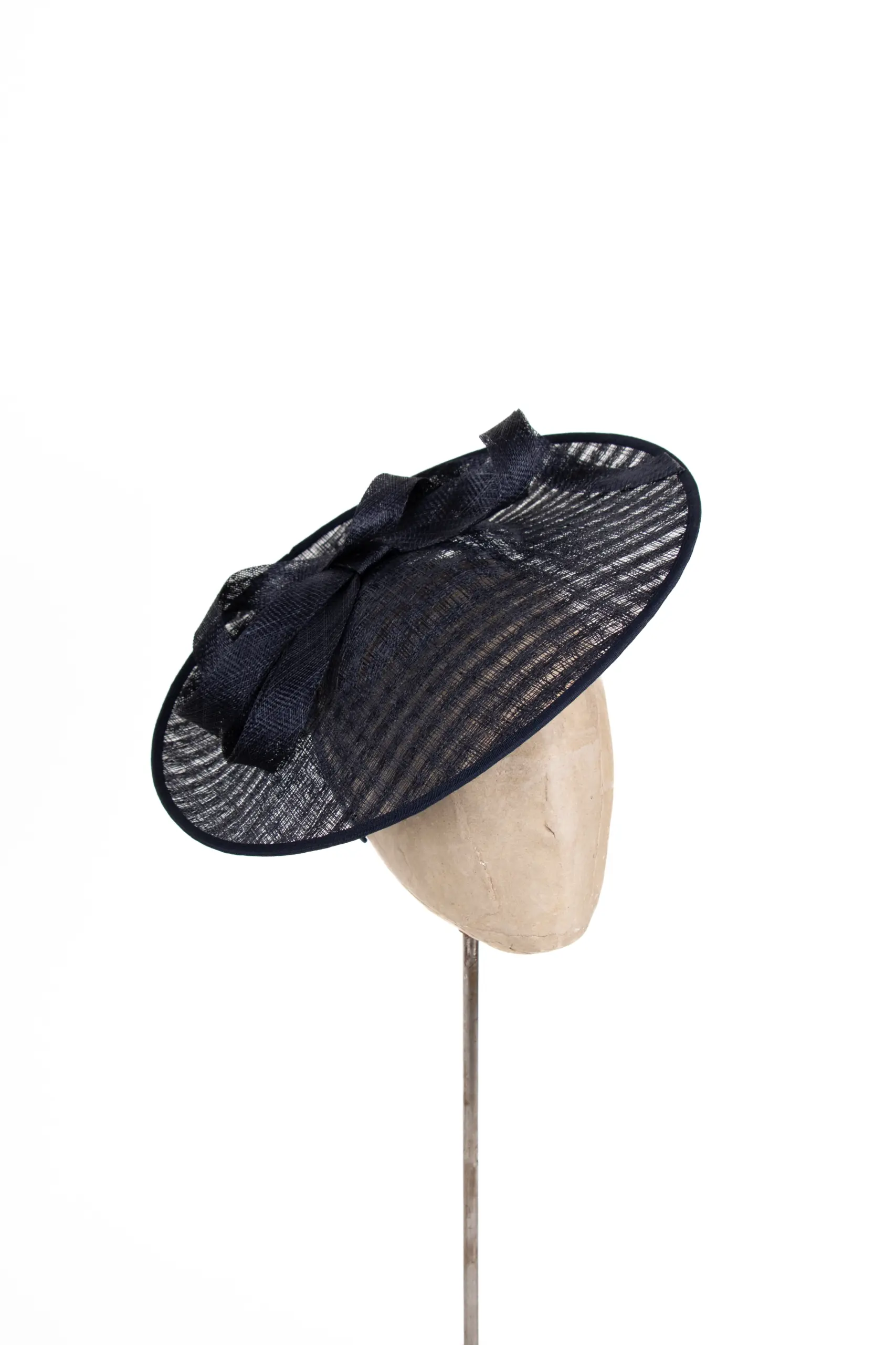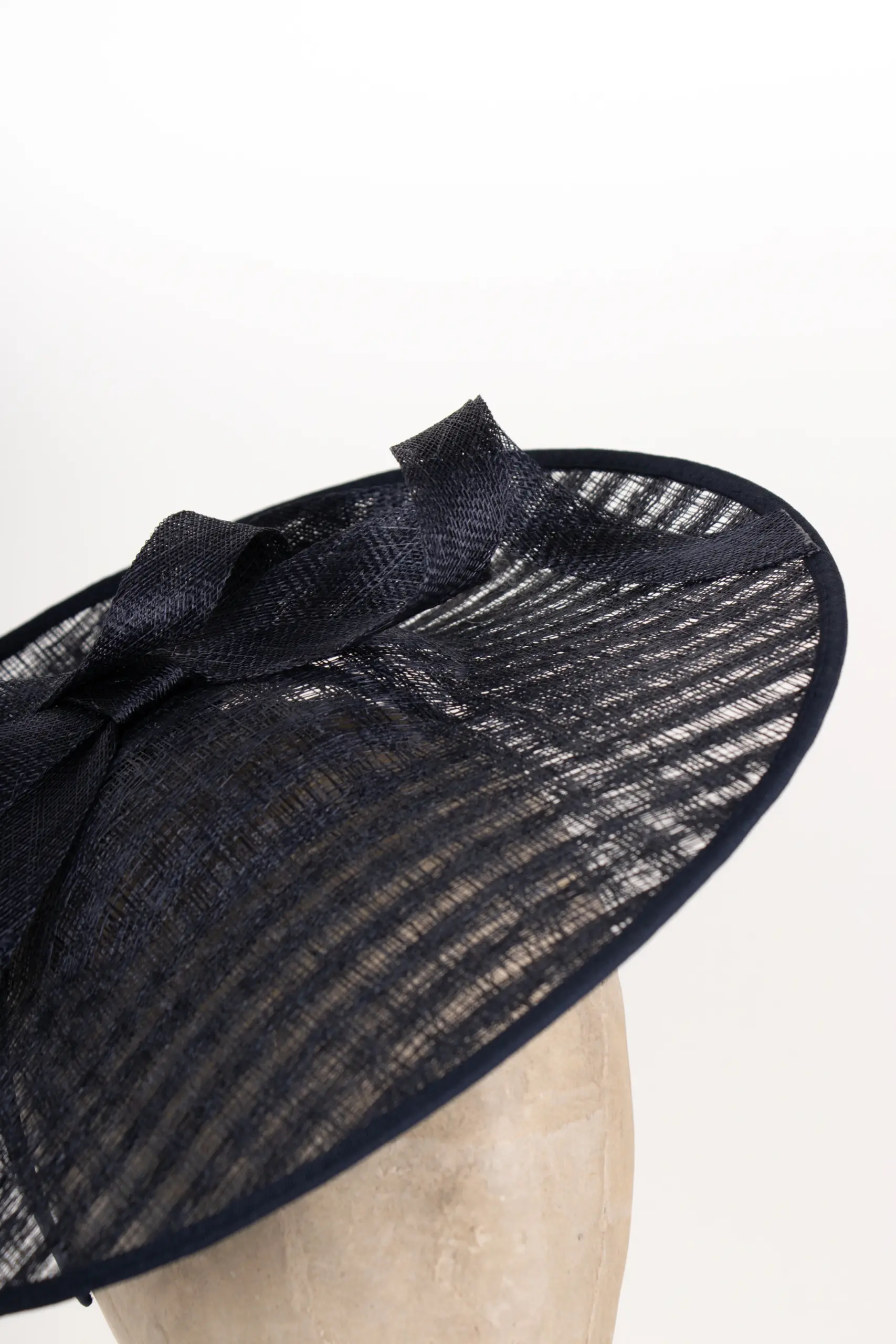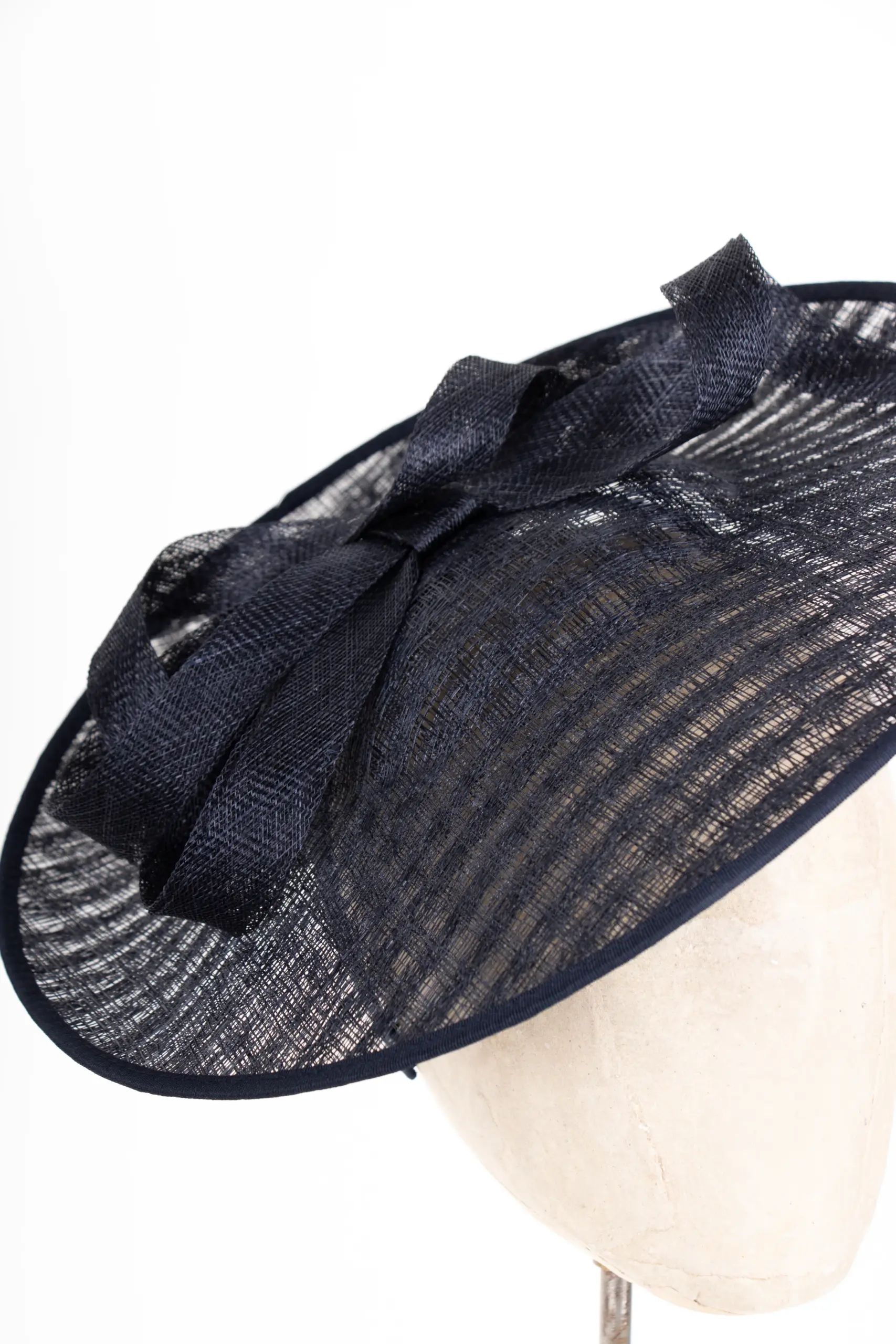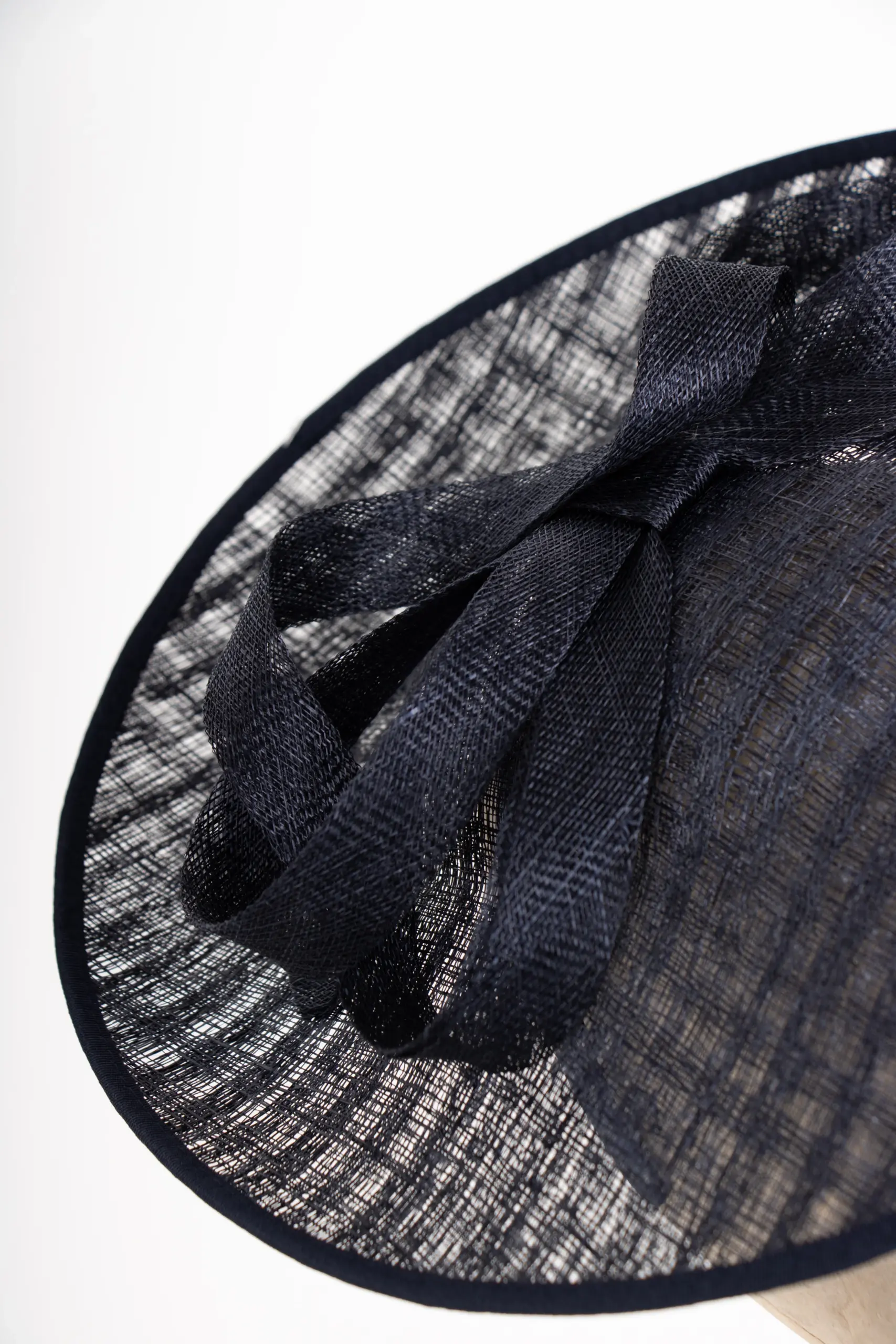 Gefertigt aus Sinamay, einem hochwertigen Naturmaterial aus Sisal-Hanf-Fasern, überzeugt das Modell durch Leichtigkeit und feine Struktur. Sinamay stammt ursprünglich von den Philippinen und ist wegen seiner eleganten Transparenz und Formbarkeit das bevorzugte Material für exklusive Anlasshüte.