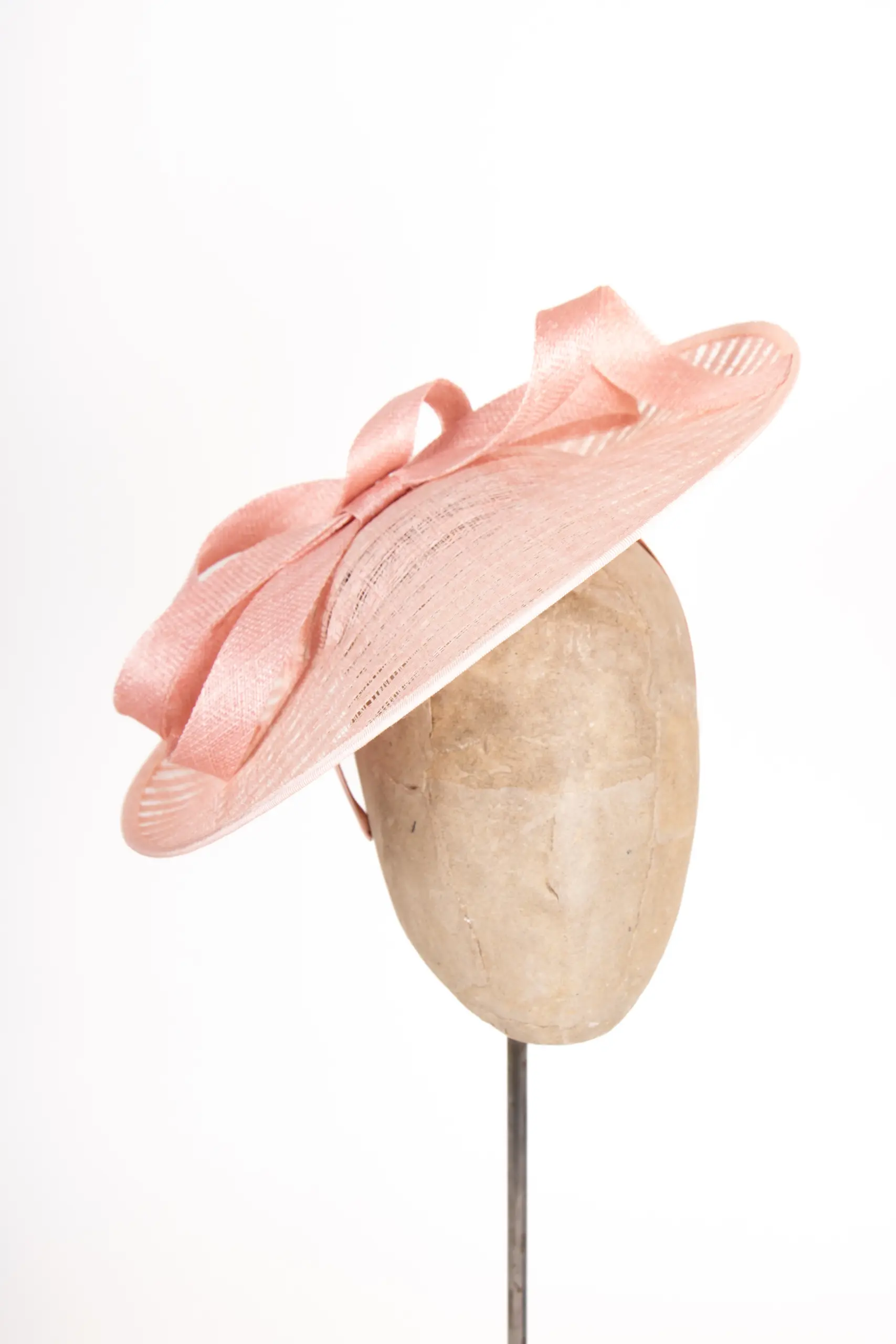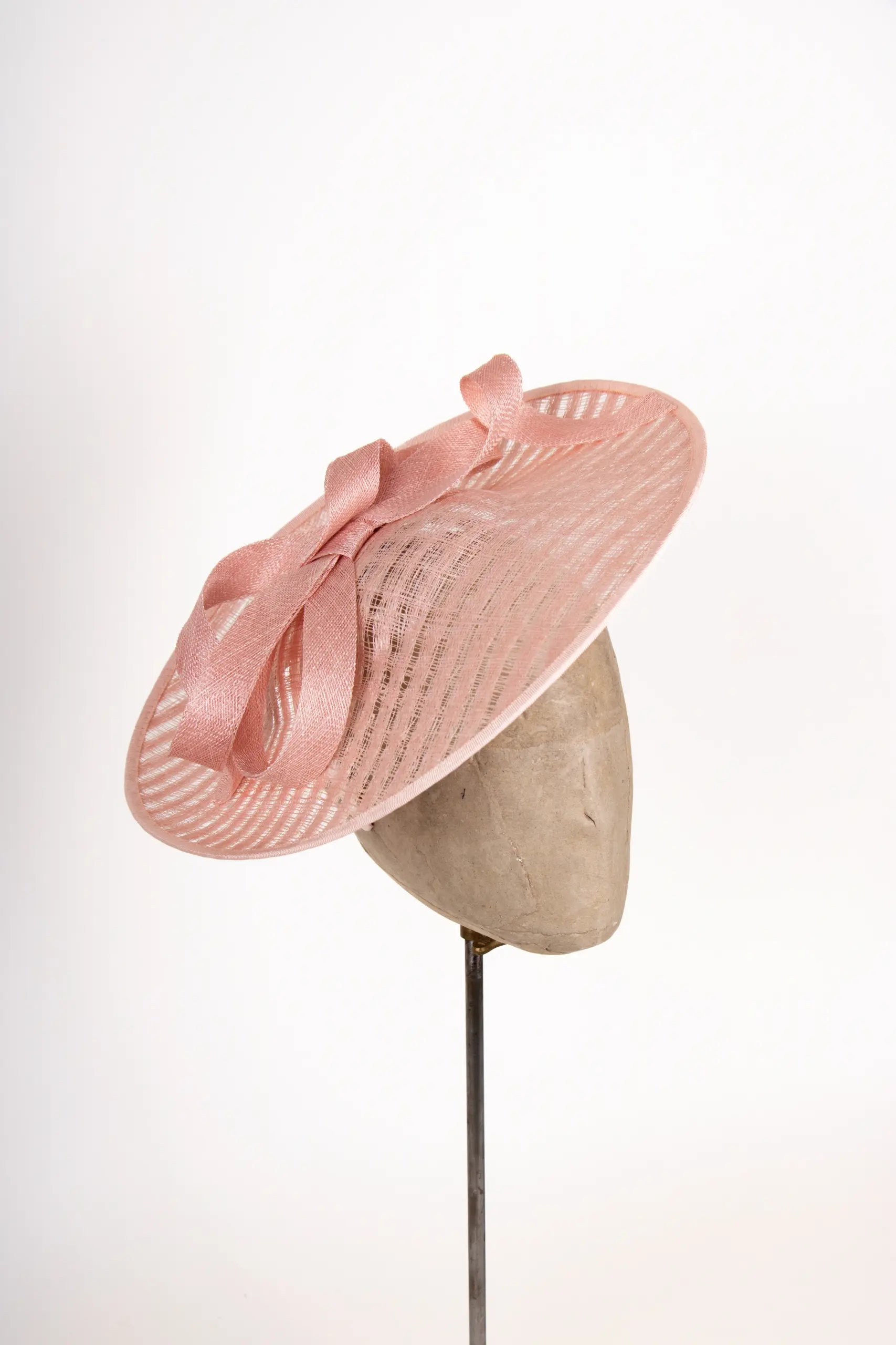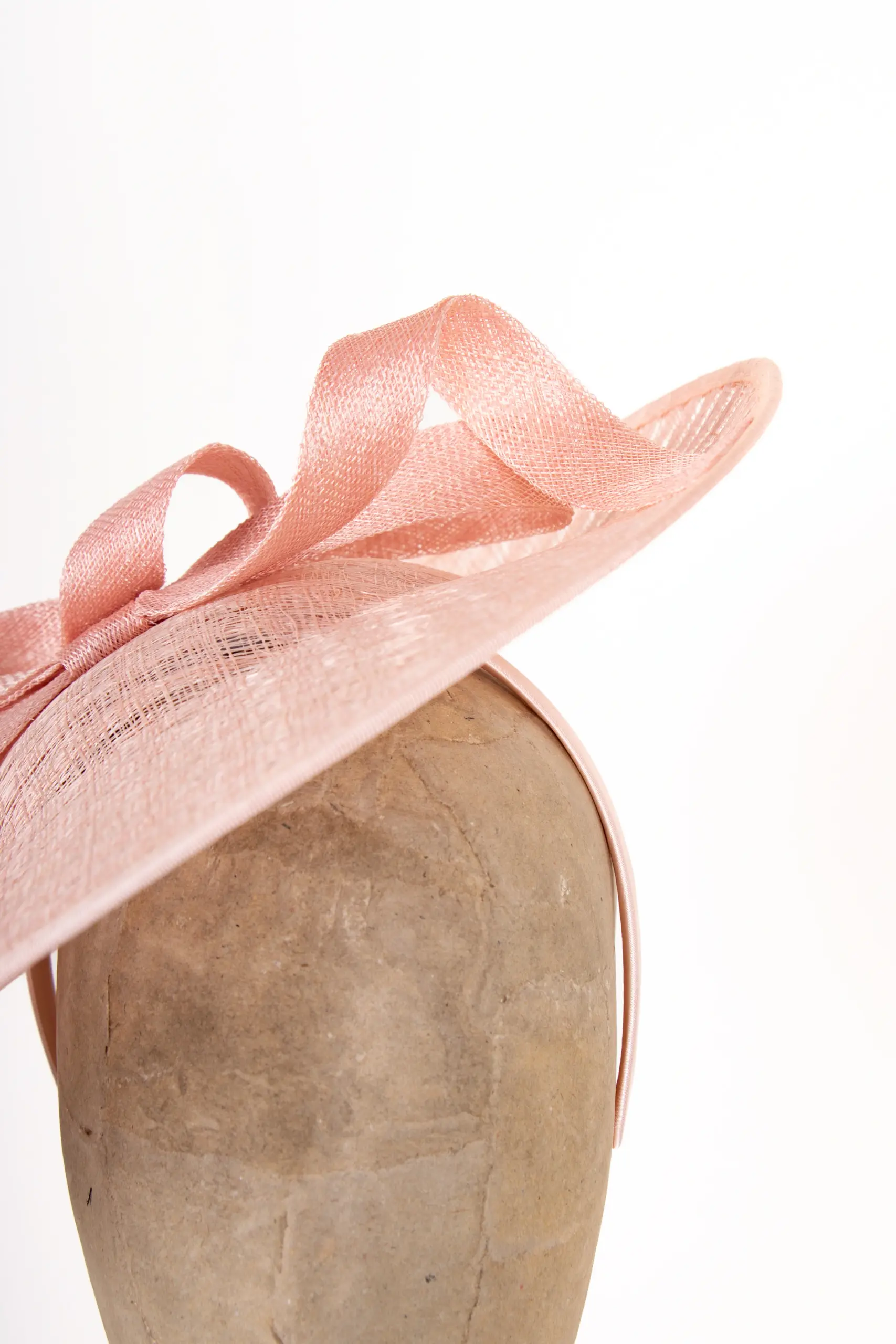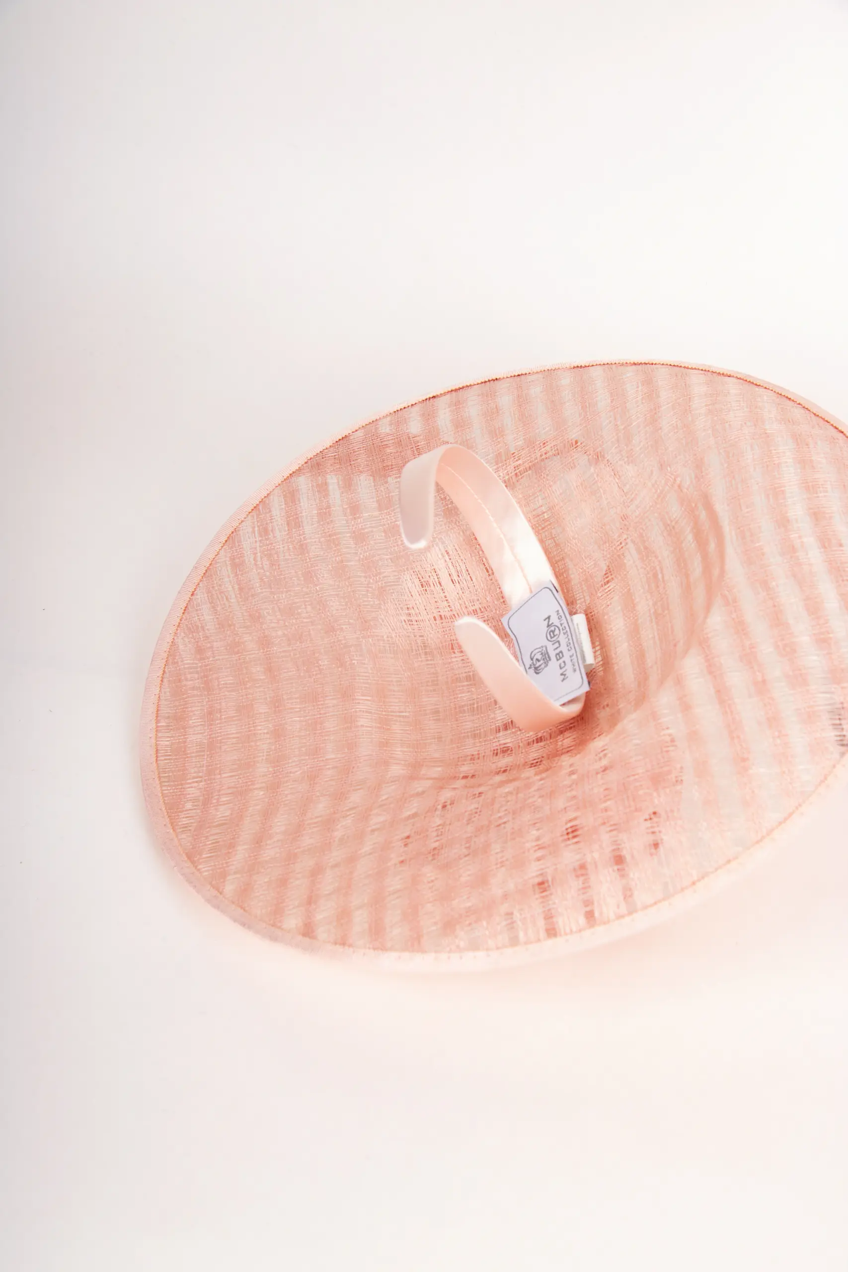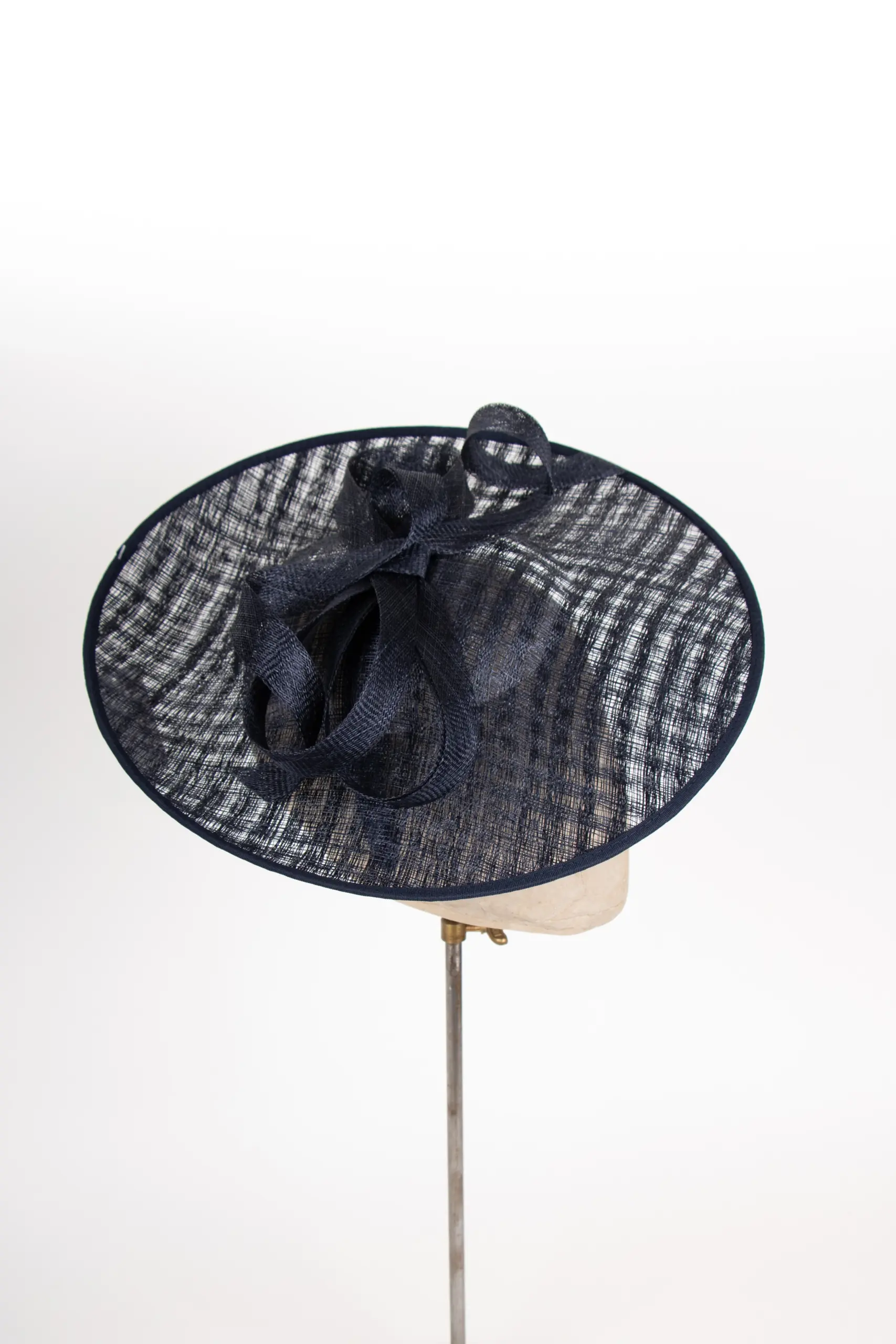 Gefertigt aus Sinamay, einem hochwertigen Naturmaterial aus Sisal-Hanf-Fasern, überzeugt das Modell durch Leichtigkeit und feine Struktur. Sinamay stammt ursprünglich von den Philippinen und ist wegen seiner eleganten Transparenz und Formbarkeit das bevorzugte Material für exklusive Anlasshüte.