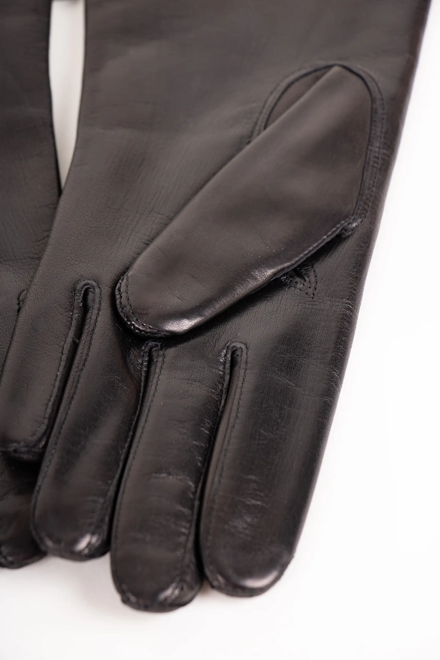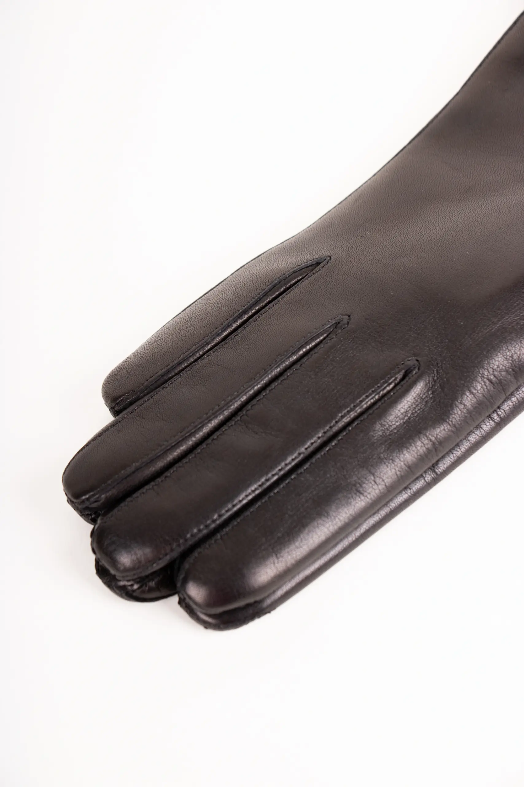 Das Haarschaf-Nappaleder ist geschmeidig, robust und schmiegt sich schon nach kurzer Zeit perfekt an die Hand an. Durch den verlängerten Schaft wird nicht nur das Handgelenk besser geschützt, der Handschuh wirkt auch optisch besonders elegant.